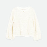 Aggiungi un tocco di brillantezza a qualsiasi outfit con questo top con paillettes a forma di bucaneve per bambine. Ricoperto di paillettes scintillanti, presenta maniche lunghe delicatamente arricciate e una vestibilità comoda e rilassata. Un fiocco in gros-grain con l'iconico ciondolo a forma di cuore dorato si adagia delicatamente sullo scollo, rendendolo perfetto per le feste o per arricchire i look di tutti i giorni.