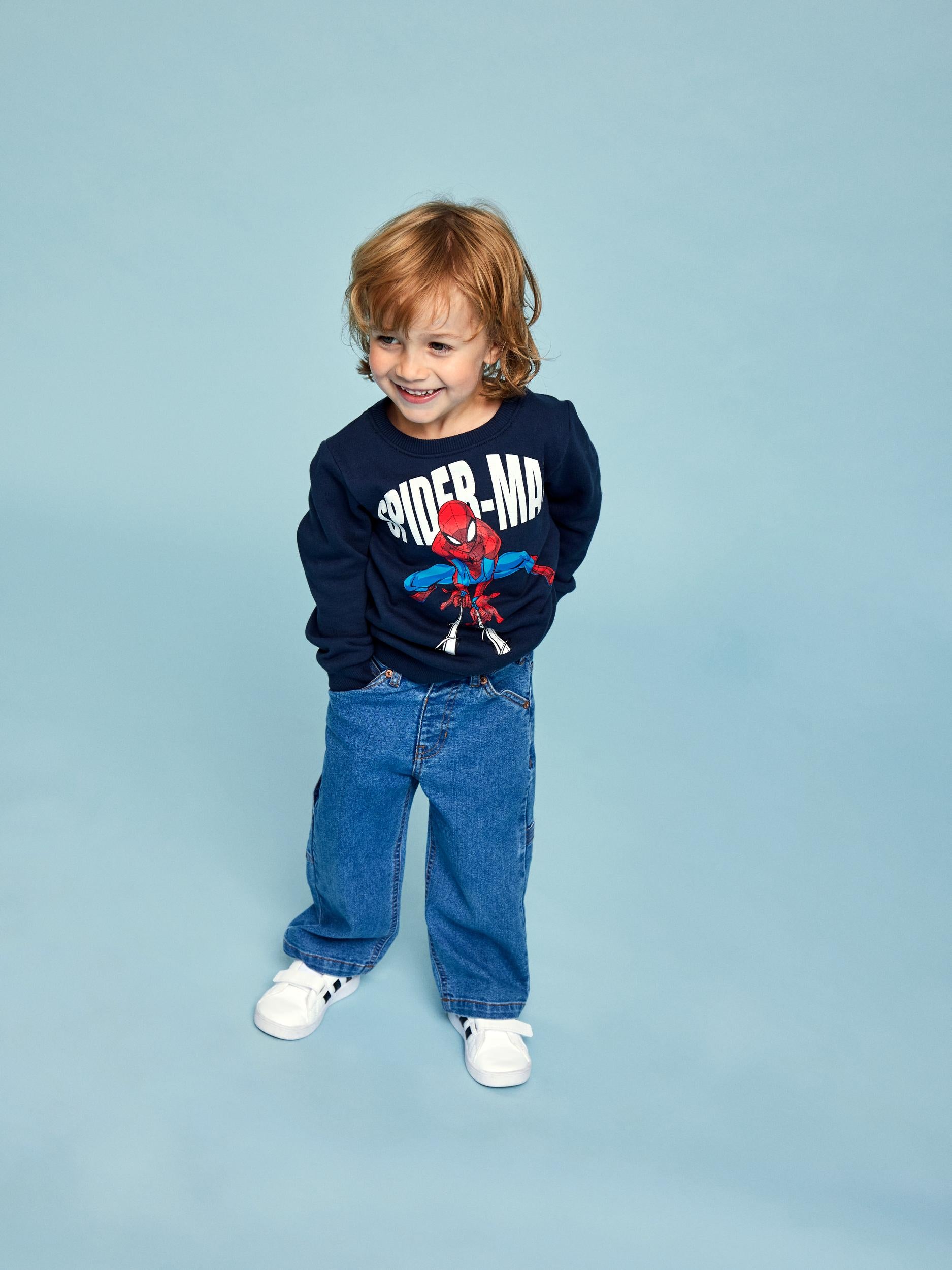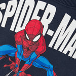 Felpa in caldo cotone felpato, in tinta unita blu, con stampa di Spiderman.