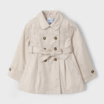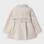 Giacca modello trench manica lunga per bambina. Colletto con risvolto. Chiusura con bottoni. Realizzato in twill, un tessuto resistente e durevole con un effetto drappeggiato. Fondo con dettagli a pieghe. Cintura da annodare in vita.