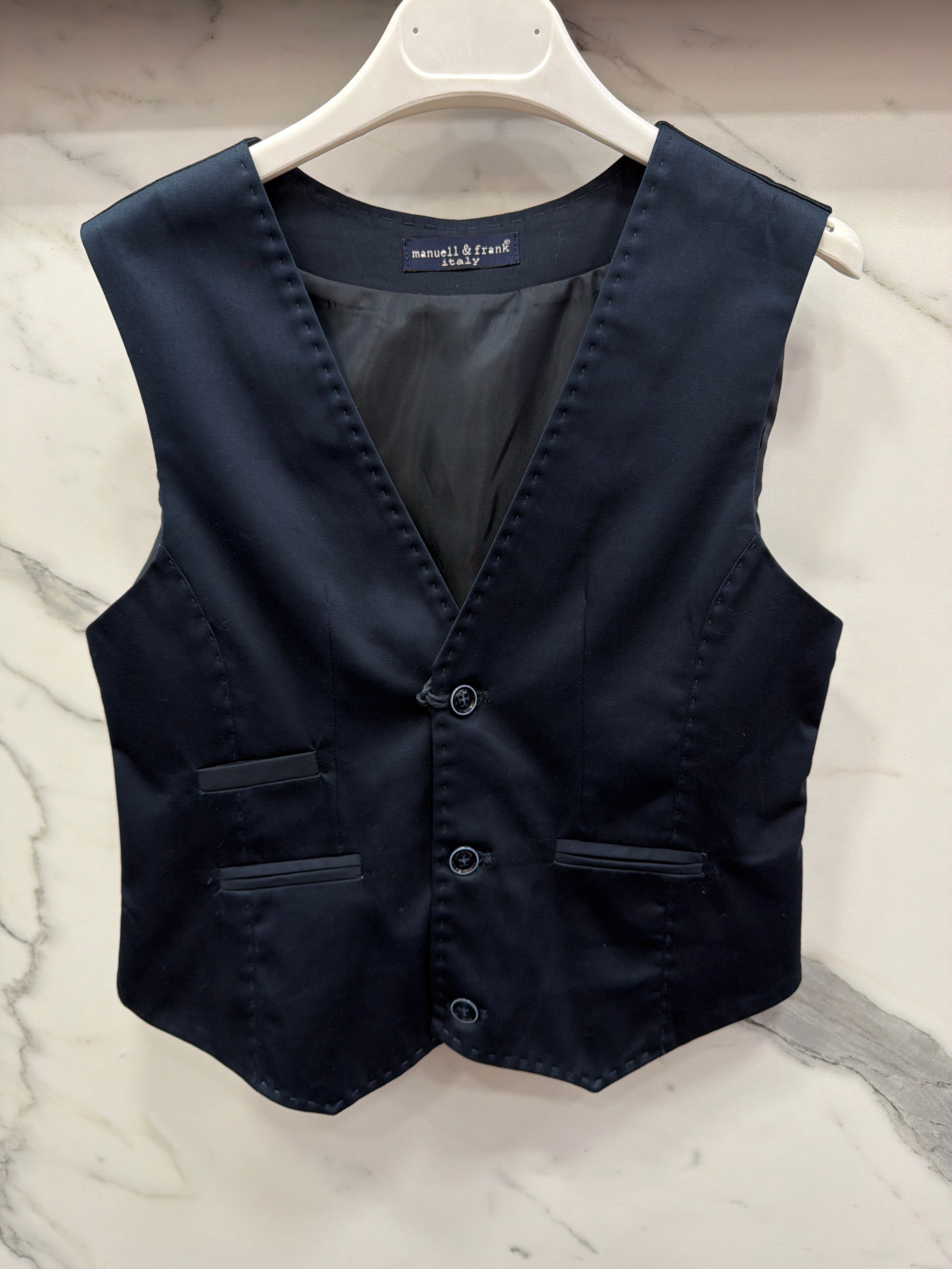 Gilet elegante realizzato in cotone di qualità superiore con retro in raso raffinato. Il design sofisticato presenta impunture precise che aggiungono dettagli di pregio al capo. Perfetto per occasioni speciali o per elevare lo stile quotidiano del bambino, questo gilet combina comfort e eleganza senza compromessi. La combinazione di materiali nobili garantisce una vestibilità impeccabile e una durabilità nel tempo. Un capo versatile che si abbina facilmente con capi della collezione, ideale per chi ricerca qualità e stile per i propri figli.