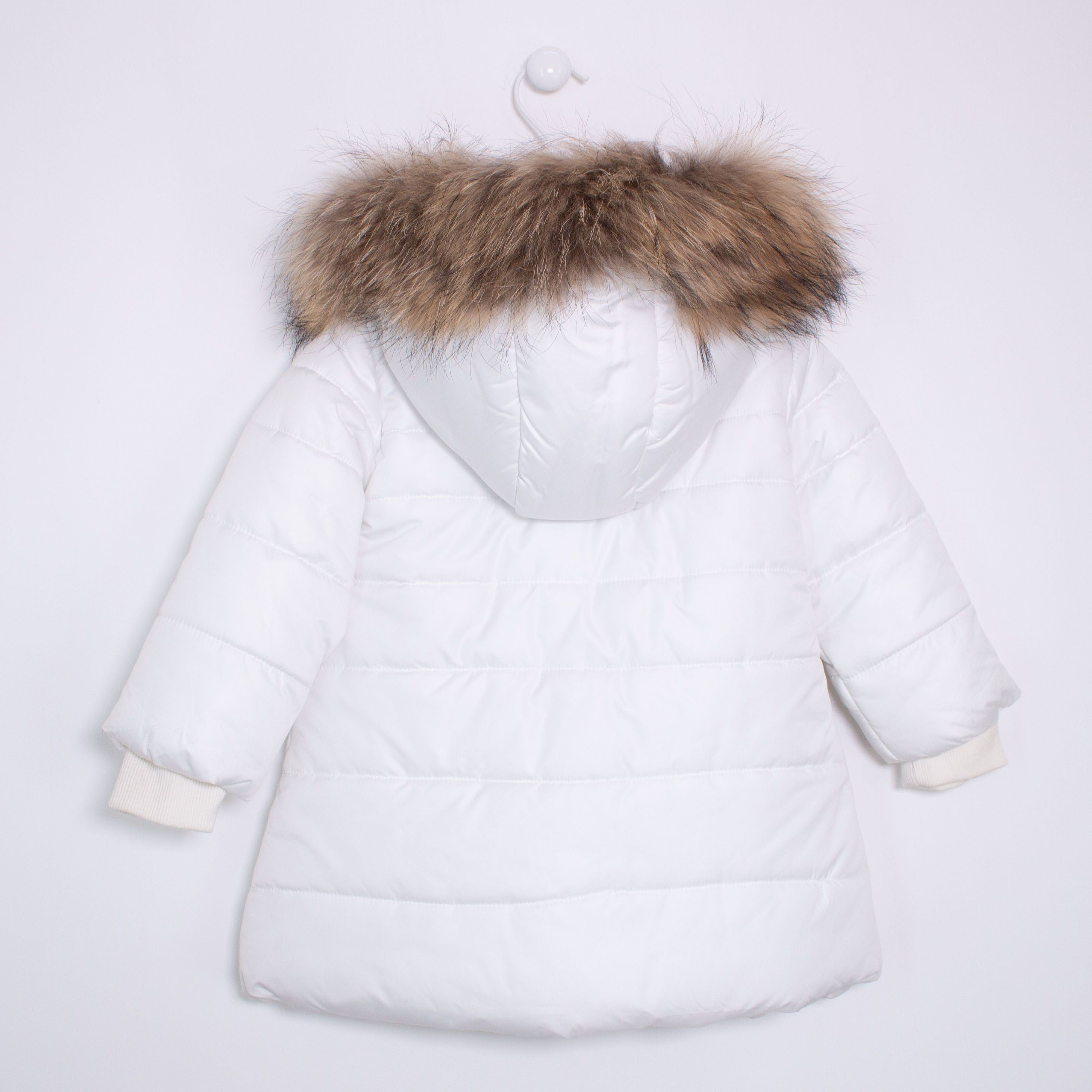 Giubbotto lungo con cappuccio e pon pon in pelliccia originale