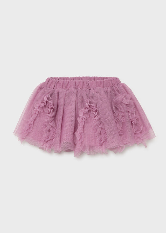 Minigonna per neonata. Elastico in vita per una migliore vestibilità. Elastico regolabile in vita che garantisce un miglior taglio del capo. Confezione in tulle leggero e vaporoso.