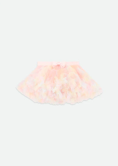 Angel's Face Tutù iconico per neonati in arcobaleno. La gonna è raccolta in una morbida cintura elasticizzata, completamente foderata con una comoda miscela di cotone. Strati di morbido tulle e volant creano volume e rimbalzo, completati dal nostro fiocco distintivo in vita.