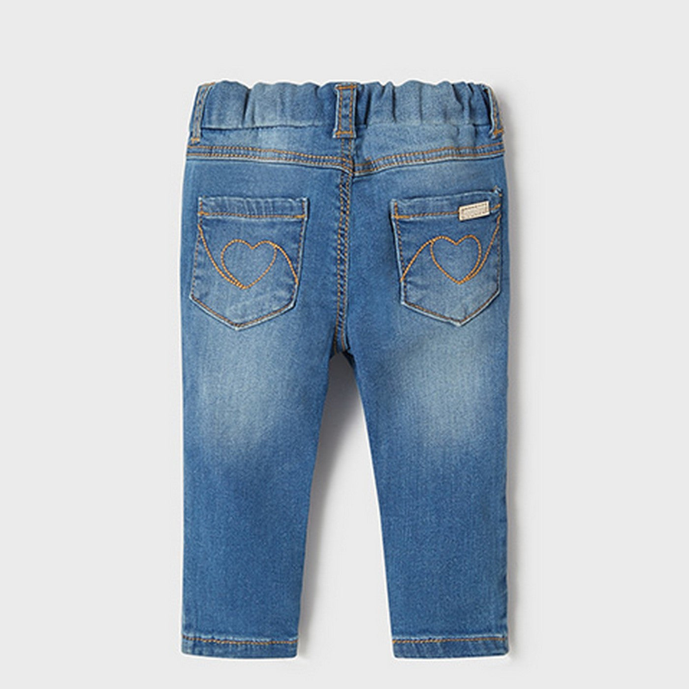 Jeans in cotone con finte tasche laterali ed elastico interno per regolarne la vestibilità.