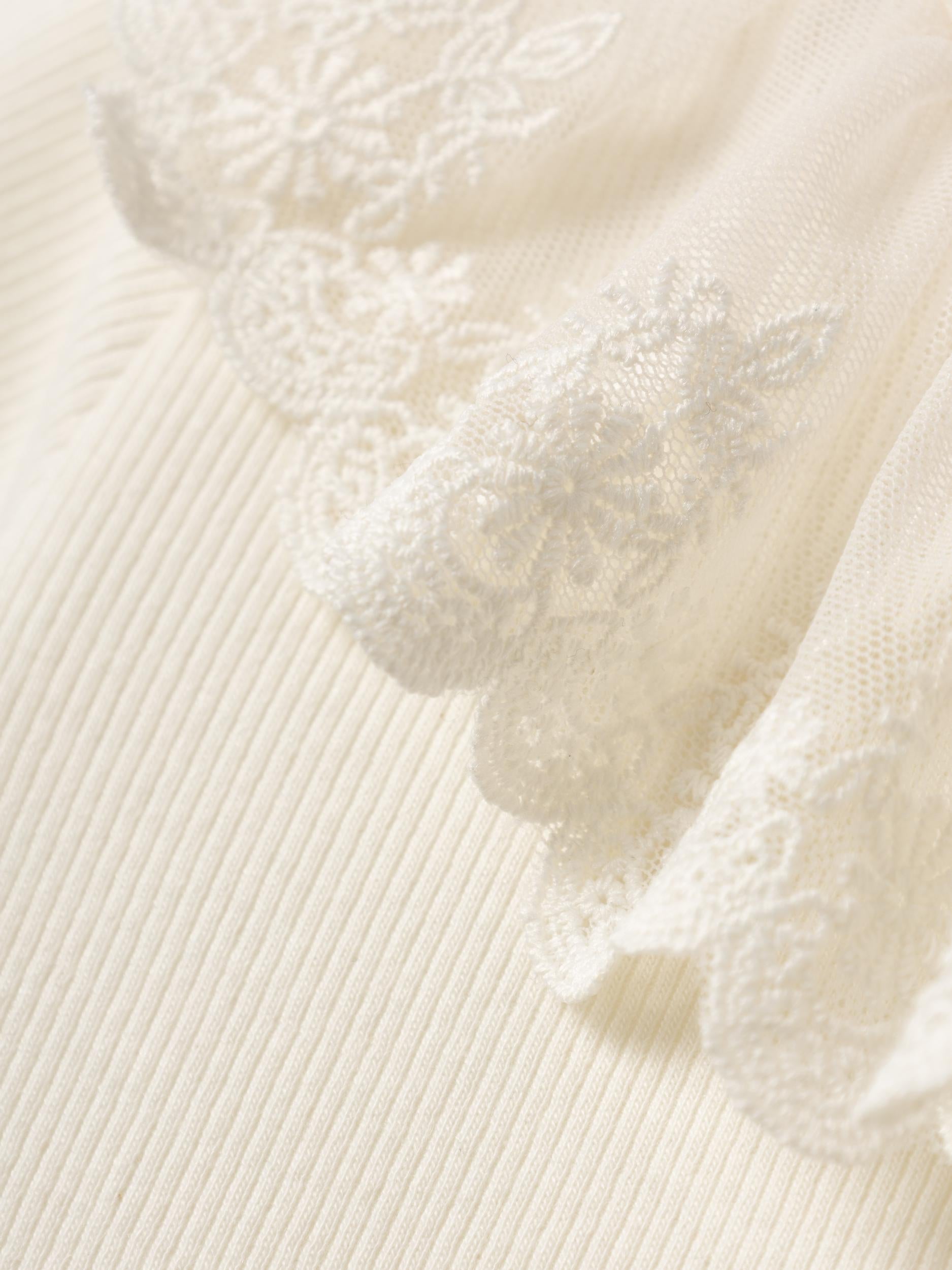 Maglia in caldo cotone millerighe, con collo volant in pizzo.