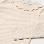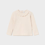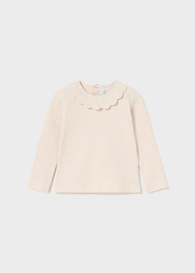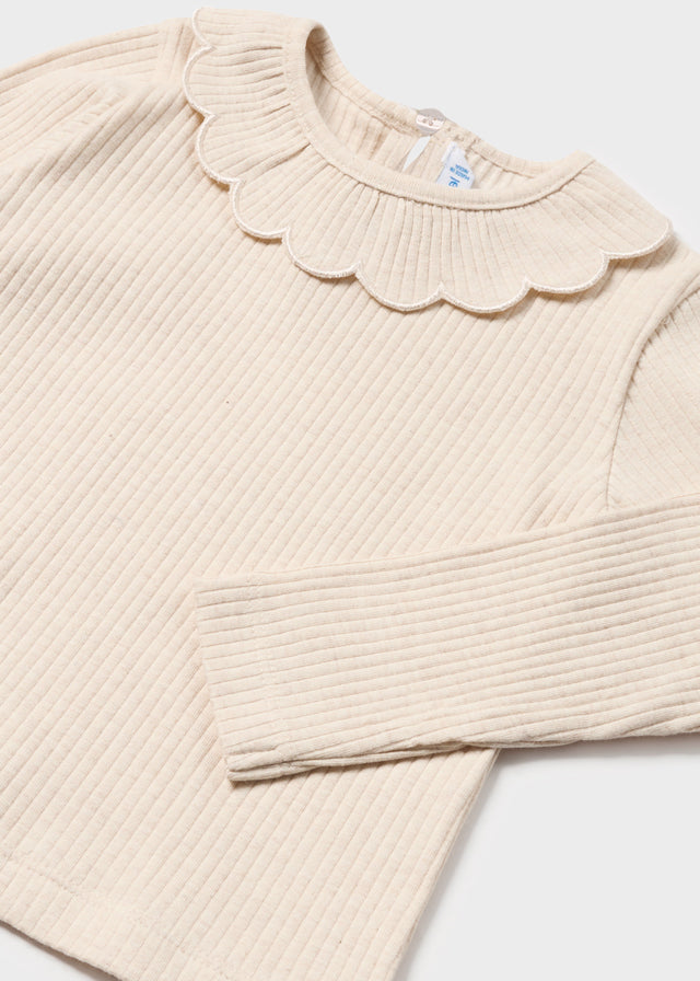 Elegante e pratica, la maglietta a costine Mayoral è perfetta per la tua neonata. Con un collo volant a forma di fiore, questa maglietta è ideale da indossare sotto gli abiti per un look sofisticato e caldo in morbido cotone.