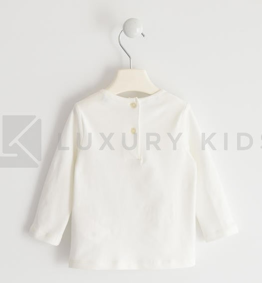 Maglietta In Caldo Cotone Con Applicazione In Ecopelle Panna Neonata K211 - SARABANDA - LuxuryKids