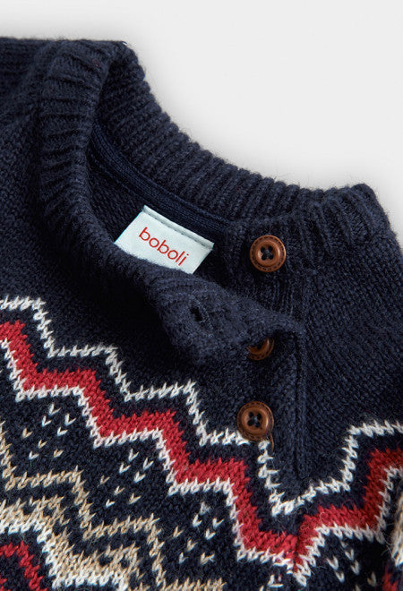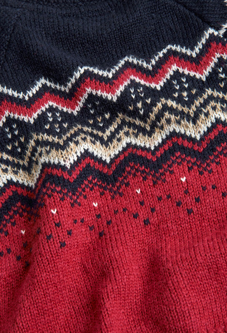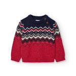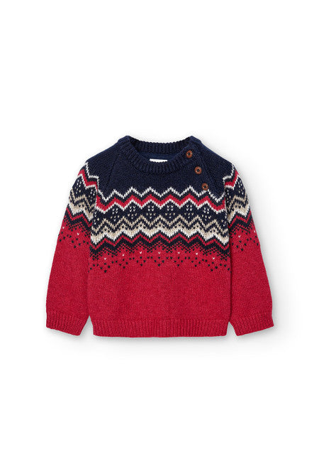 Maglioncino in caldo cotone rosso e blu, con trama interna a zig zag.