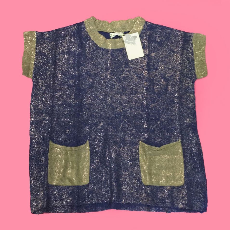 Maglioncino in misto lana mezza manica con schizzi lurex all'interno.