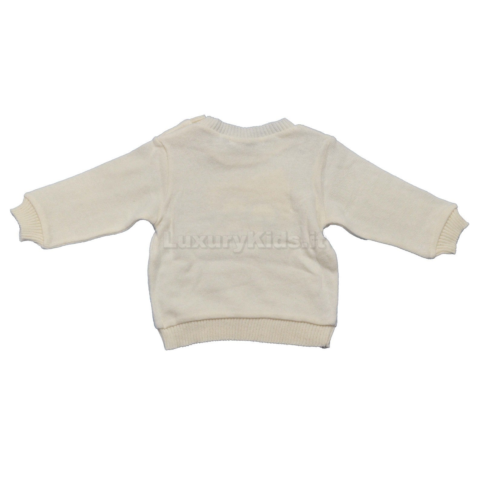 Maglioncino in misto lana color panna in tinta unita con ricamo orsetti sul davanti e chiusura con bottoni sulla spalla