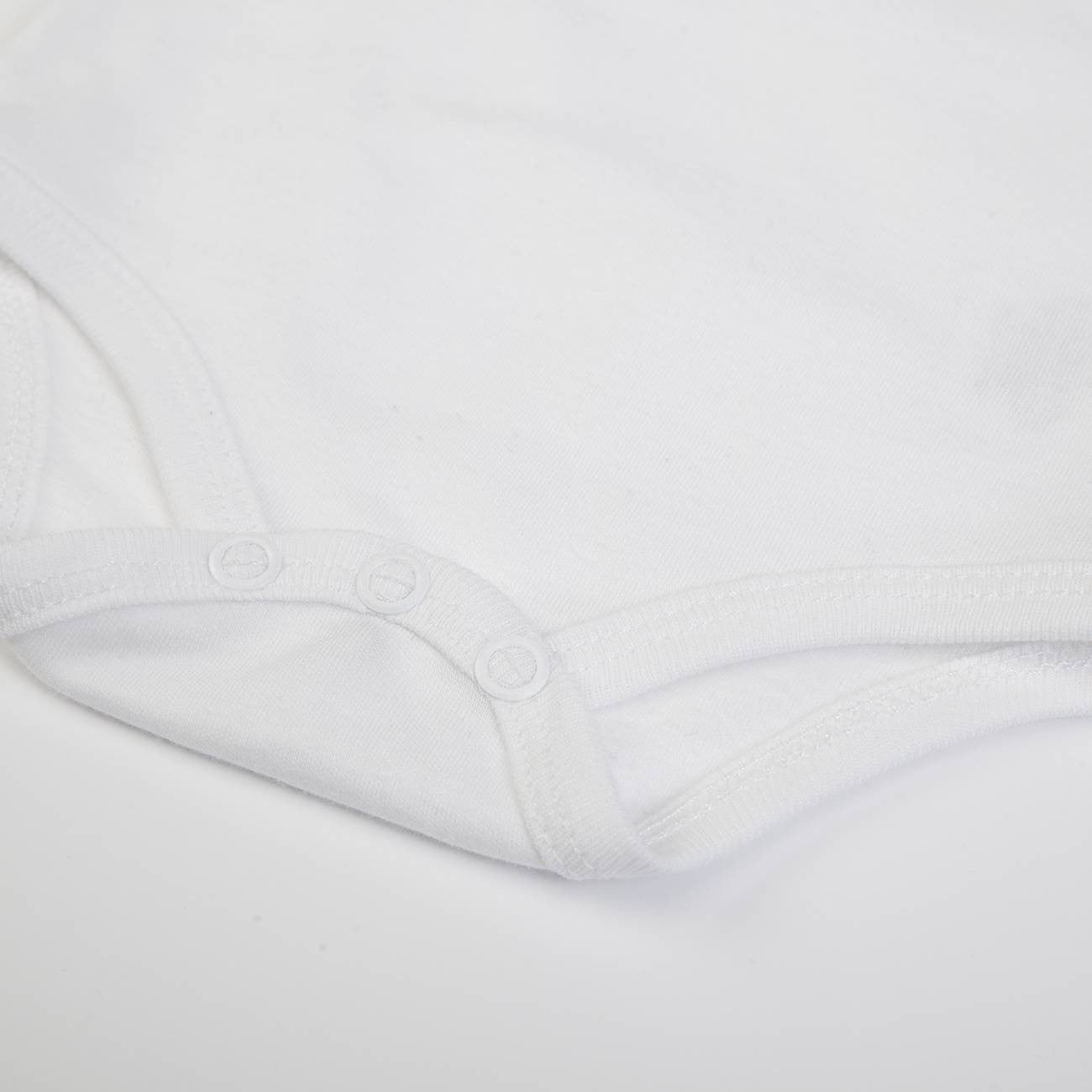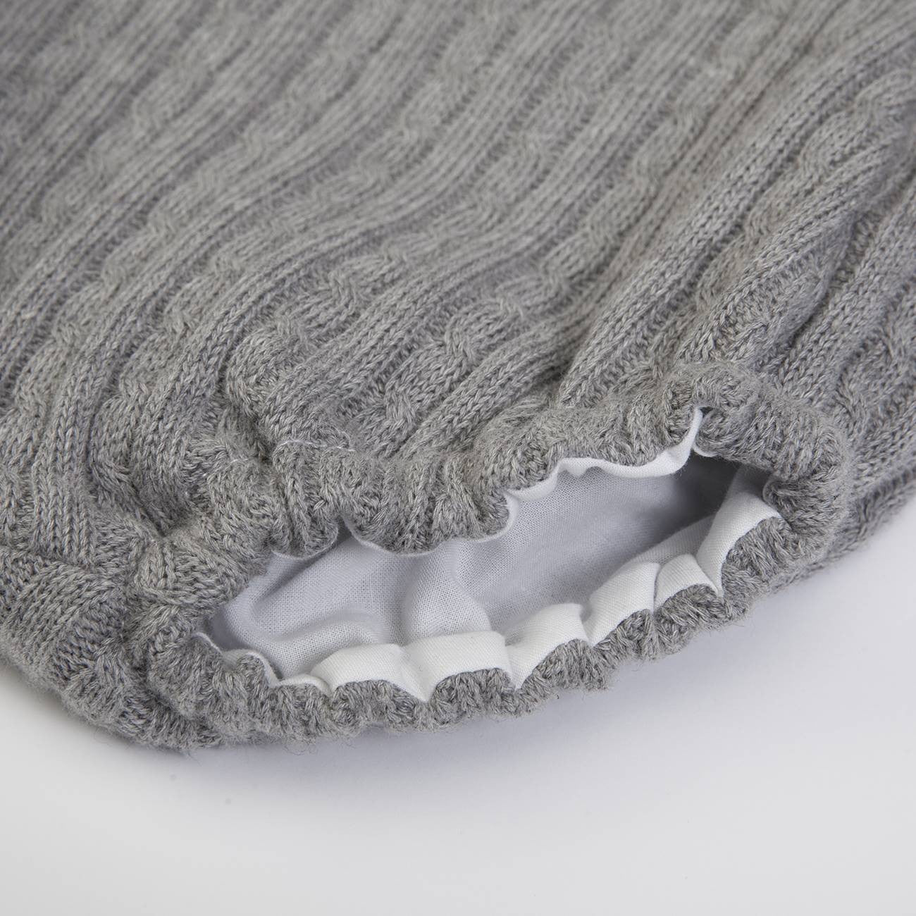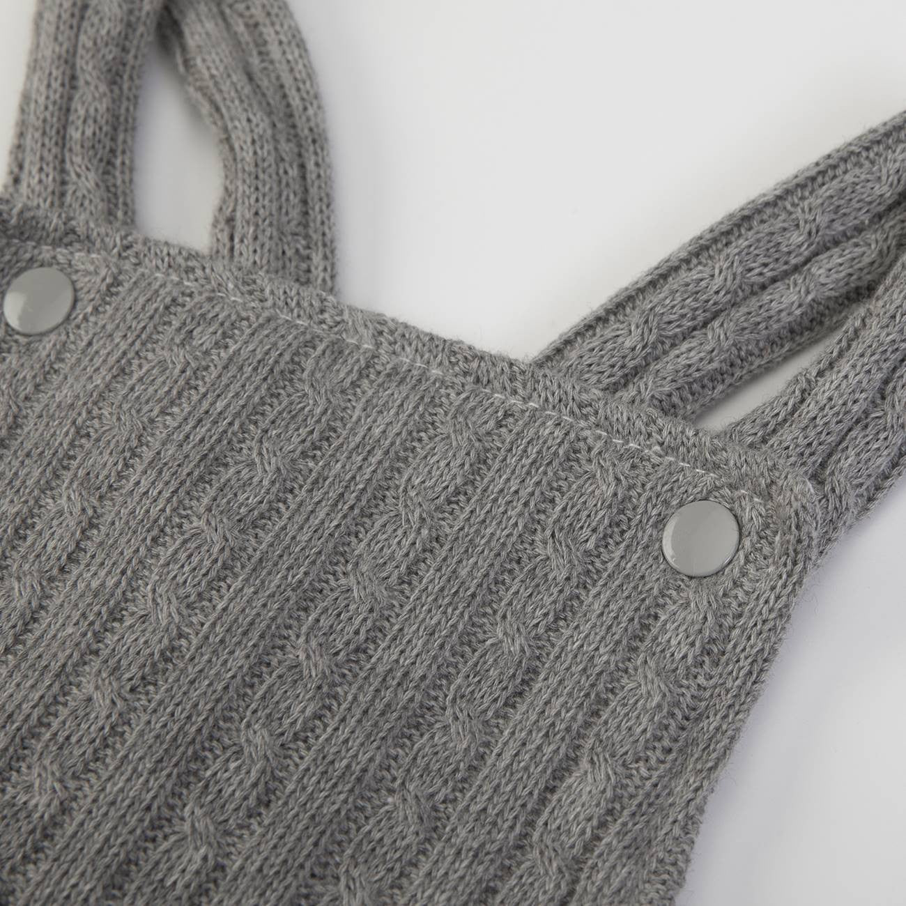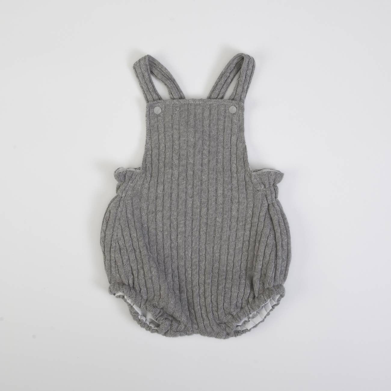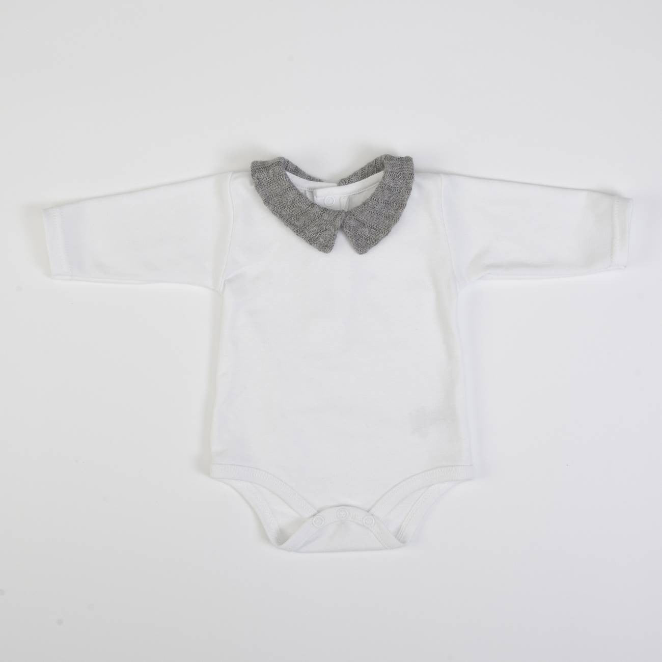 Pagliaccetto in lana con elastico in vita e alle gambe e body bianco con colletto in lana, maniche lunghe e bottoni sul retro.