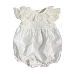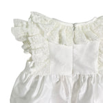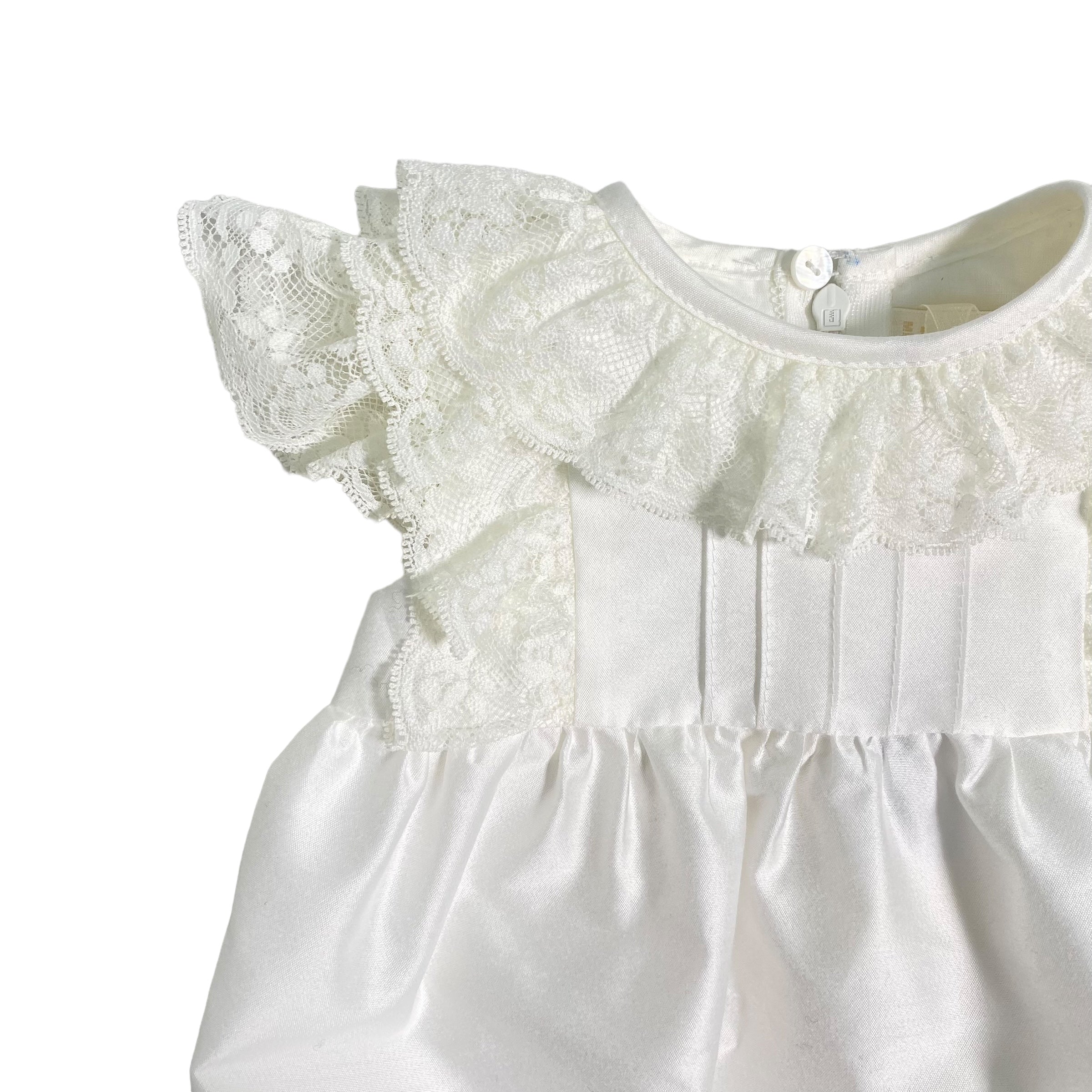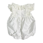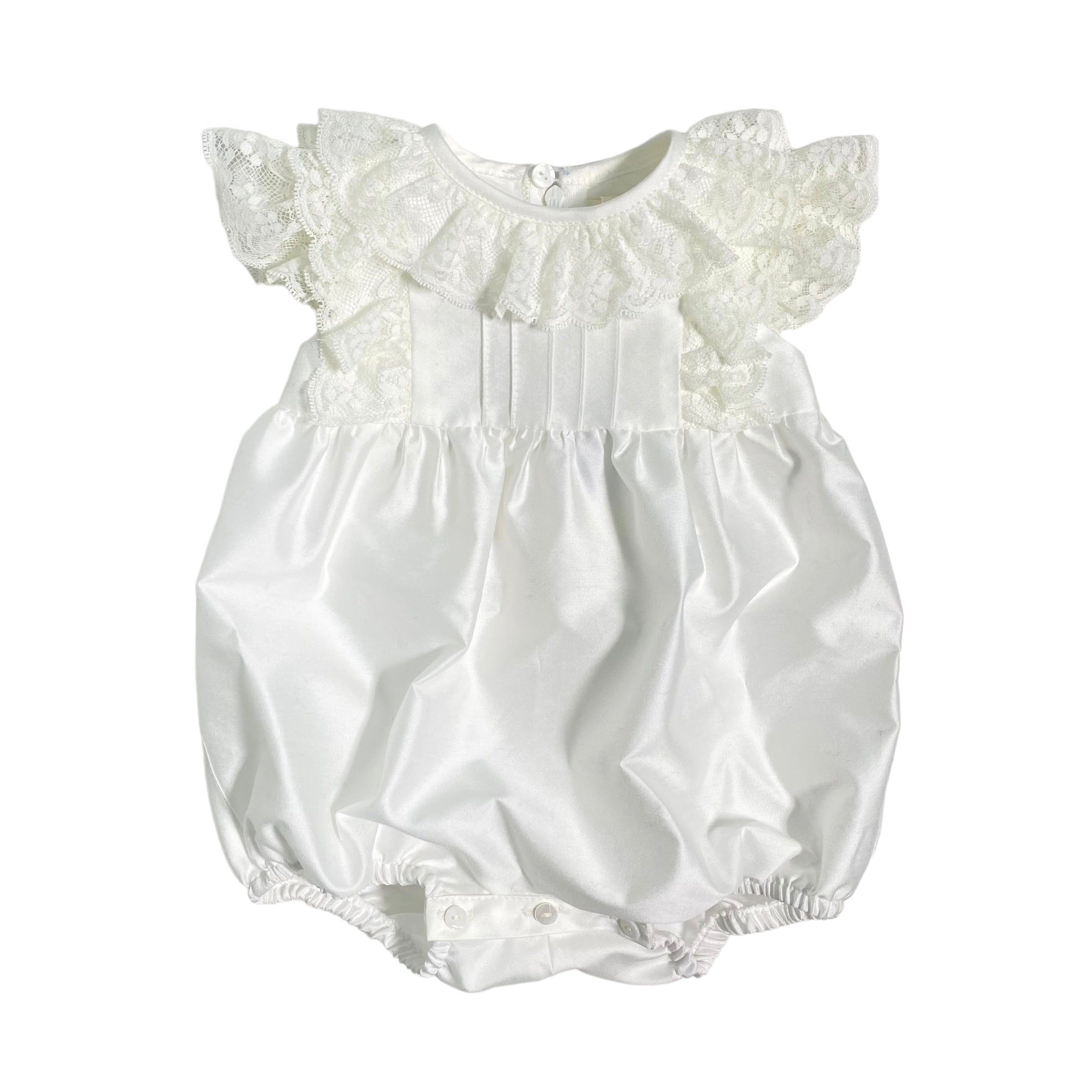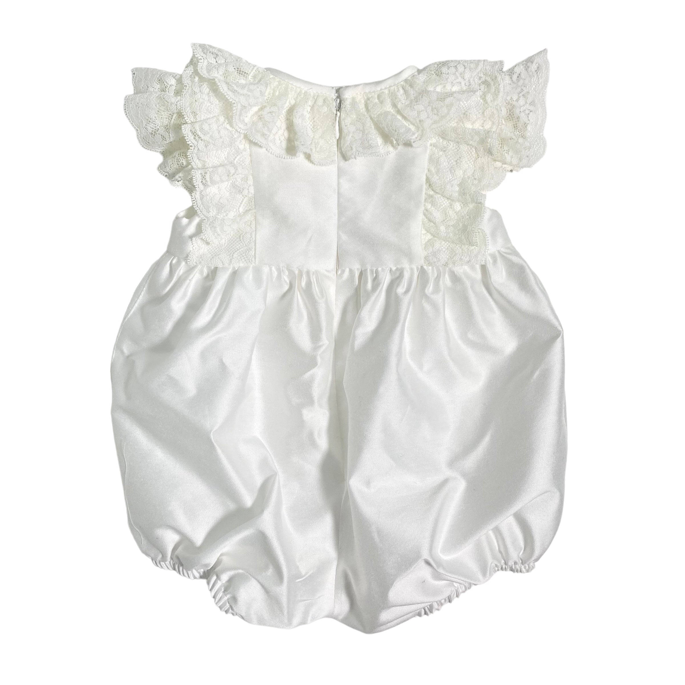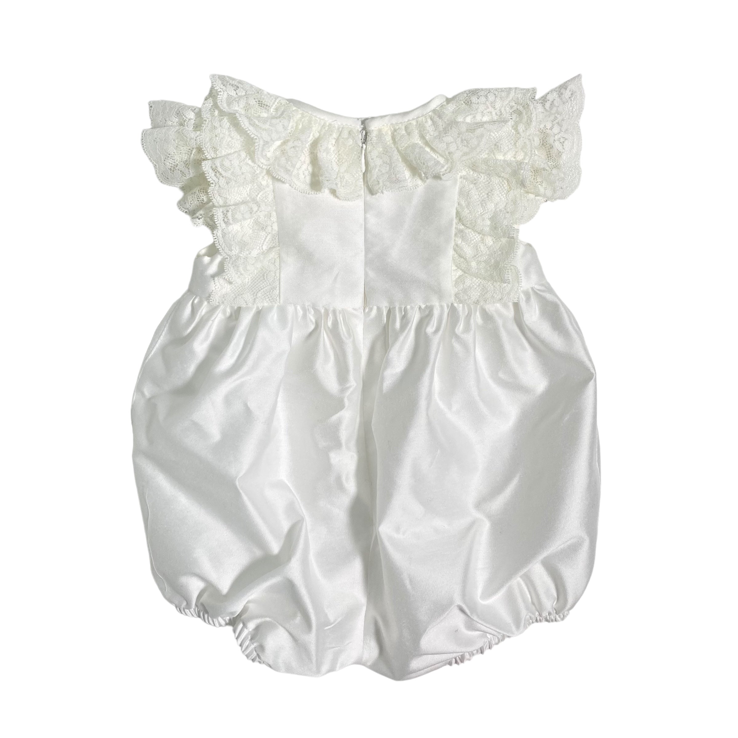 Questo pagliaccetto elegante in shantung di seta è perfetto per le occasioni speciali della tua neonata. Il collo in pizzo aggiunge un tocco di raffinatezza mentre la seta assicura un comfort lussuoso.