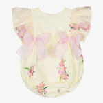 Questo delizioso pagliaccetto è perfetto per la tua neonata. Con uno splendido motivo a giglio rosa e rifinito con delicato tulle rosa e grandi fiocchi, questa tutina è completamente foderata per il massimo comfort. Grazie ai bottoni in madreperla sul retro e sotto, la vestizione sarà comoda e facile.