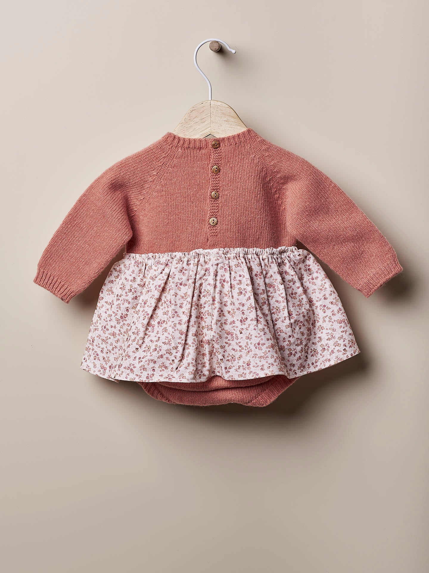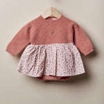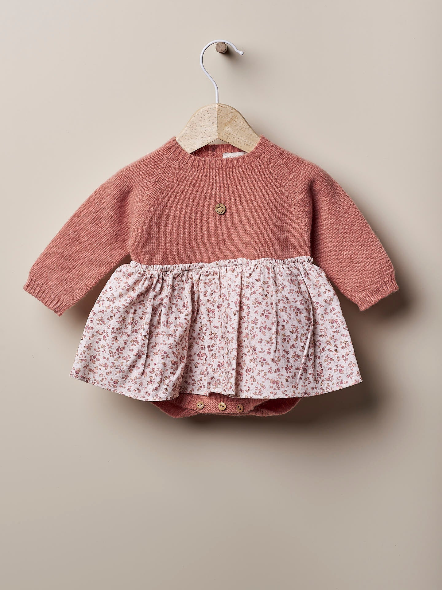 Shorty a maniche lunghe lavorato a maglia in morbida lana merino extra fine, ottimo per neonati. La maglietta corta a maniche lunghe TONES OF GARDENS IN WINTER è lavorata a punto ajour con un affascinante dettaglio della gonna bombazine floreale. Si chiude dietro e tra le gambe con bottoni in legno. Realizzato con la tecnologia Wholegarment, questo capo è privo di cuciture per il massimo comfort del tuo bambino.