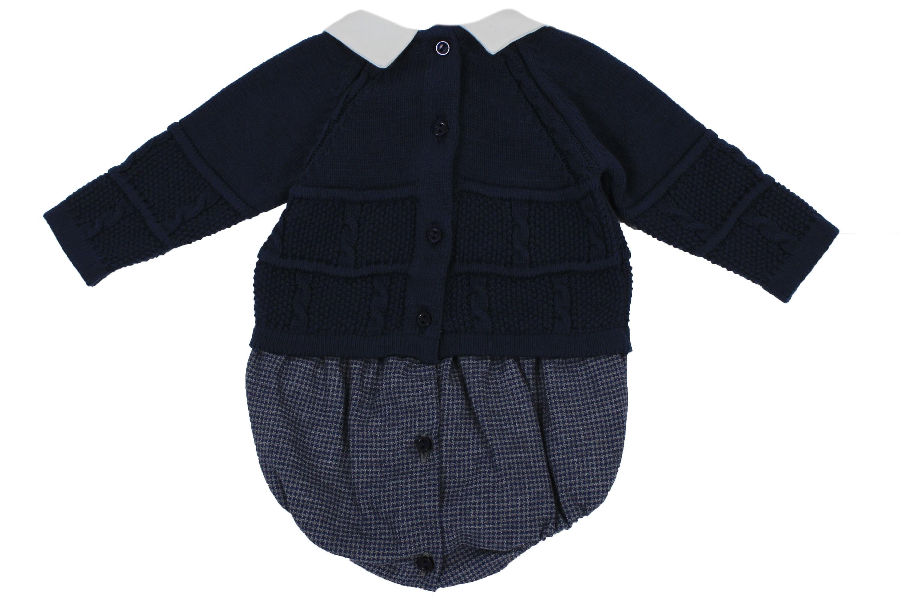 Body con parte superiore in maglia con ricami, maniche lunghe e colletto e parte inferiore in caldo cotone fantasia houdstooth, chiusura posteriore on bottoni.