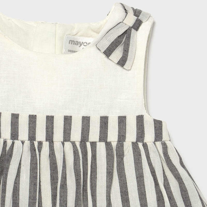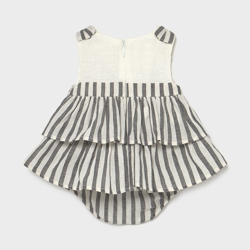 Pagliaccetto in misto lino a righe con fascetta abbinata.