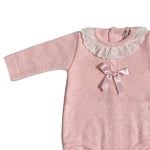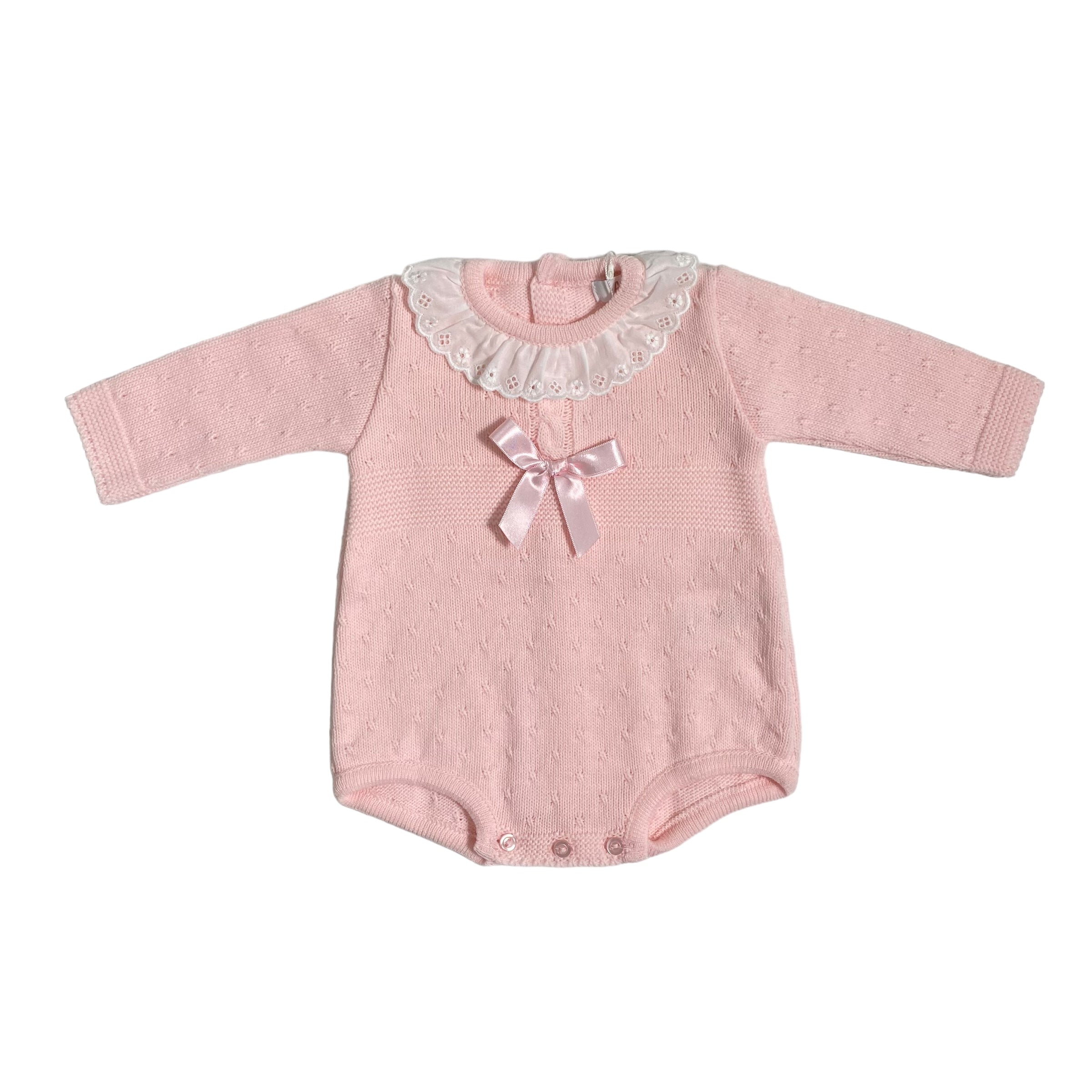 Il Pagliaccetto in Tessuto Anallergico Acrilico Neonata A&J 200 è perfetto per la tua neonata, grazie al morbido tessuto anallergico in acrilico e al colletto con rouches. Ideale per l'uscita clinica, con delicata lavorazione a trecce e un grazioso fiocco in raso.