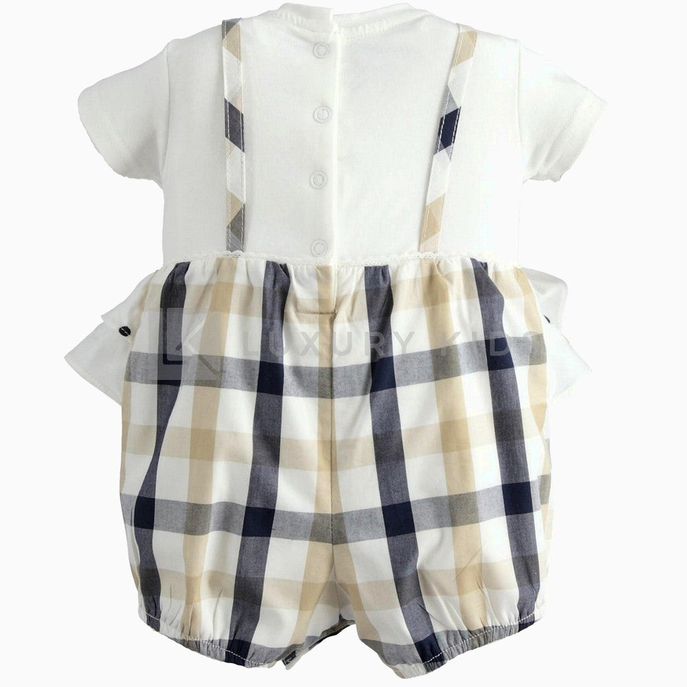 Pagliaccetto Intero Corto In cotone con fantasia a quadri panna/beige/blu