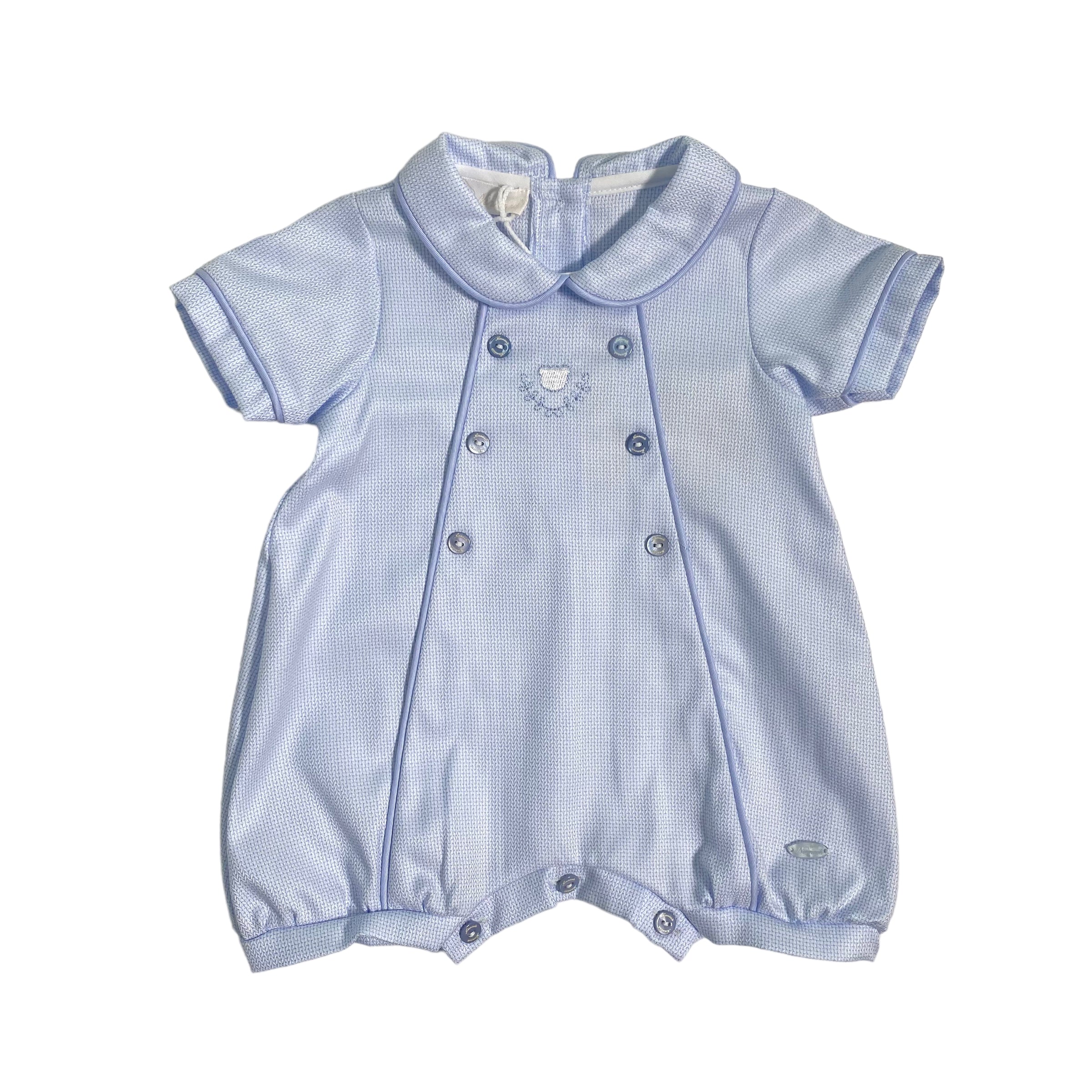 Pagliaccetto manica corta color ceste e lavorato con alcuni puntini bianchi su tutto il completo.