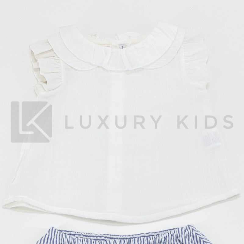 Pagliaccetto spezzato con culotte con balza con bordino in pizzo