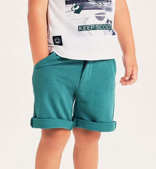 Pantaloncino Modello Tuta Con tasche e bottoncino Sul davanti e Lacci. Elastico Interno in vita regolabie.