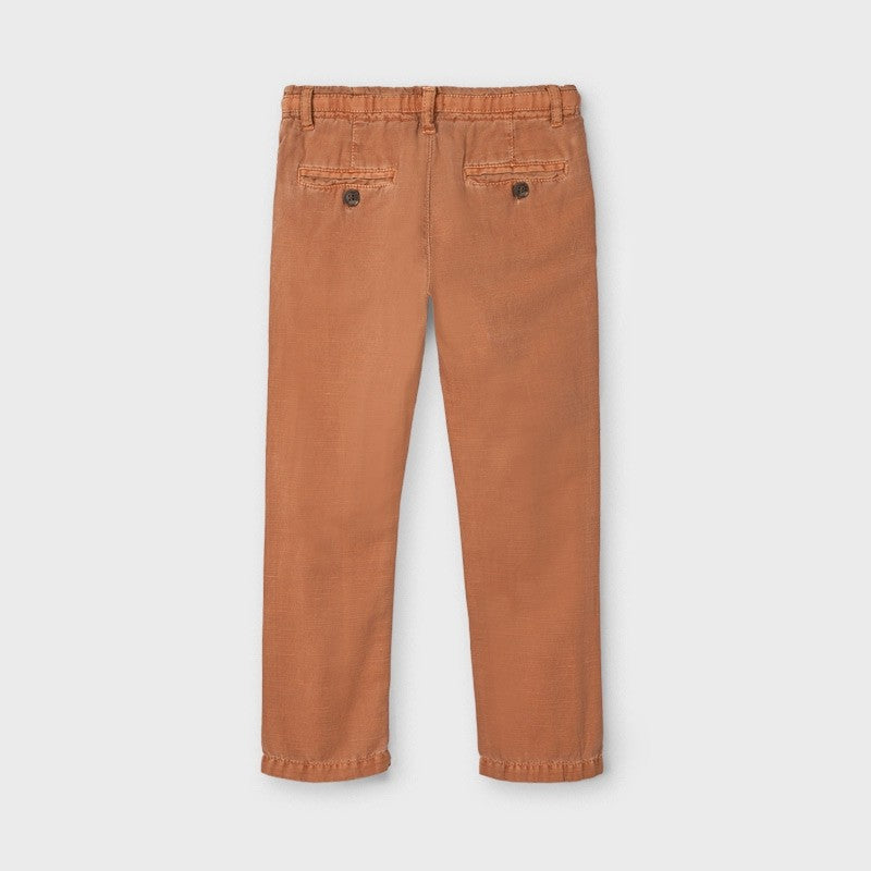 Pantalone lungo in misto lino in tinta unita color coccio, con cordino in vita.