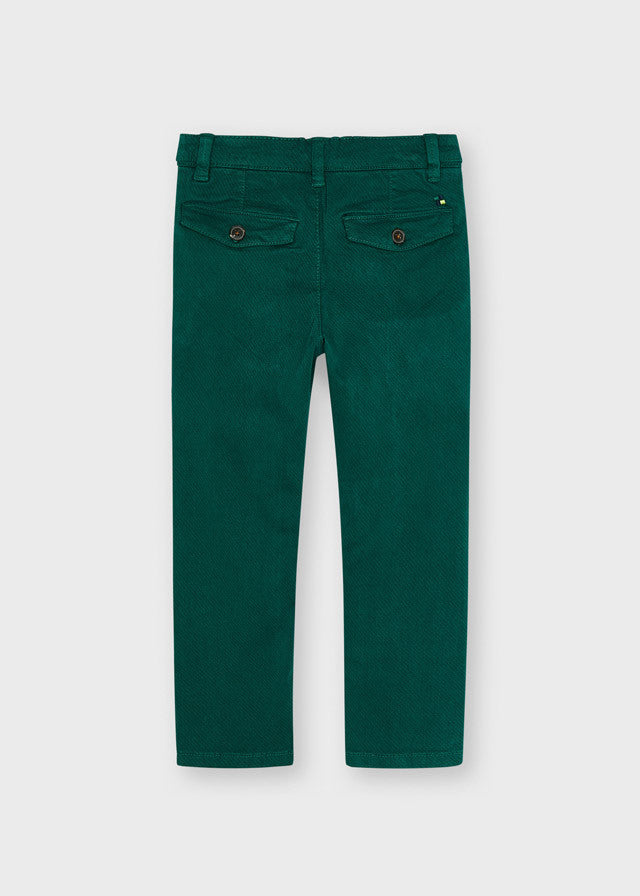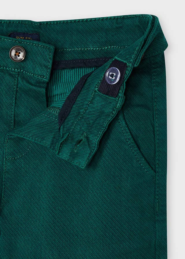 Pantalone lungo in twill di cotone verde con microriga.