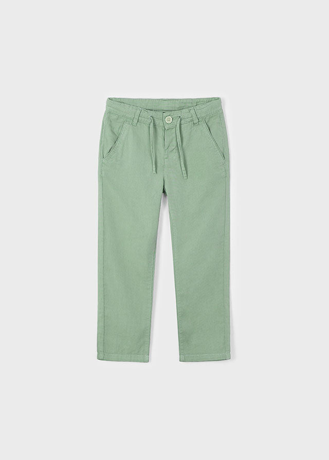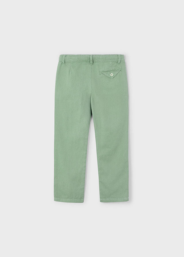 Pantalone largo modello chino. Chiusura con cerniera e bottone. Elastico regolabile in vita che garantisce un migliore vestibilità. Vita con cordoncino regolabile Tessuto dall'aspetto fresco e moderno di lino. Tasche laterali. Per motivi di sicurezza, nelle taglie piccole (3-5 anni) la cerniera è sostituita da una finta patta. Scegliendo i nostri prodotti in cotone, supporti il nostro impegno nell'iniziativa Better Cotton.