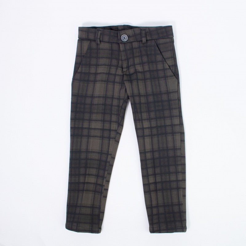 Pantalone Elegante Elasticizzato Con Fantasia a Quadri Verde e Nero. Tasche America. Elastico interno Regolabile per un Maggior Confort.