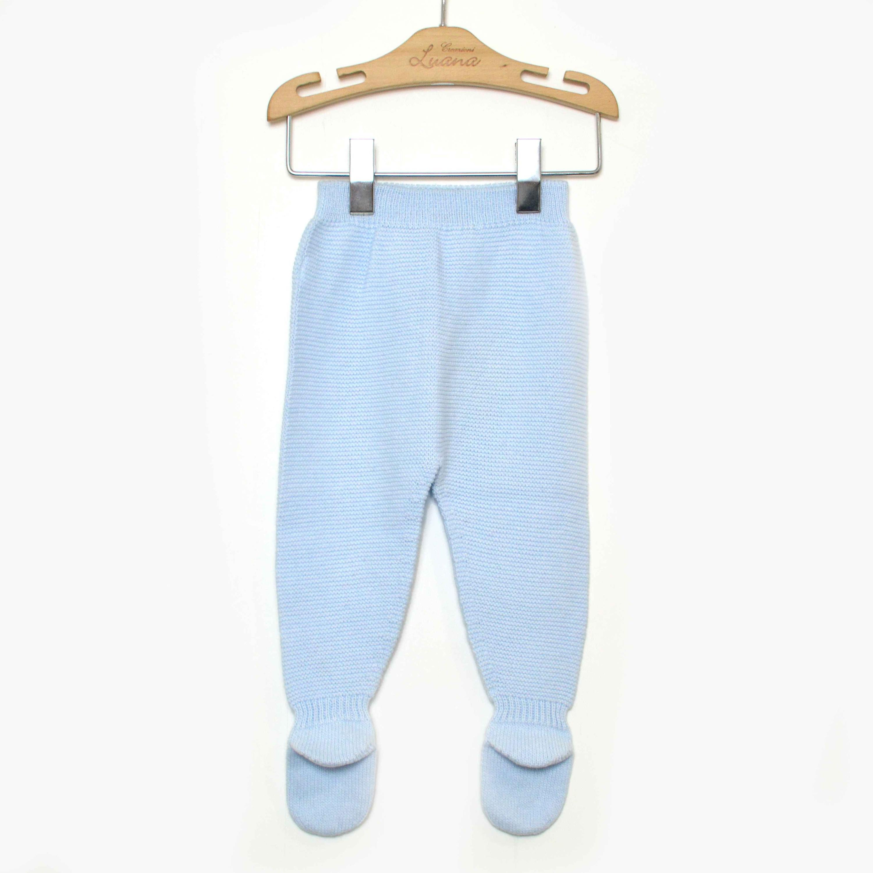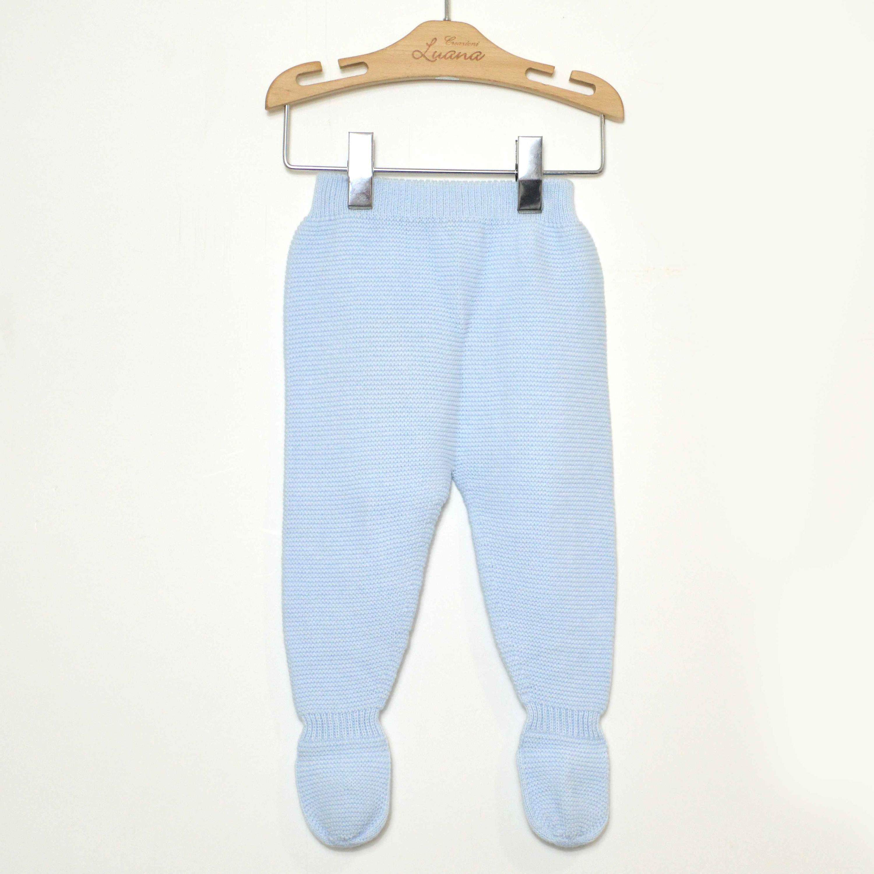 Pantalone tuta in lana celeste in tinta unita con piedino