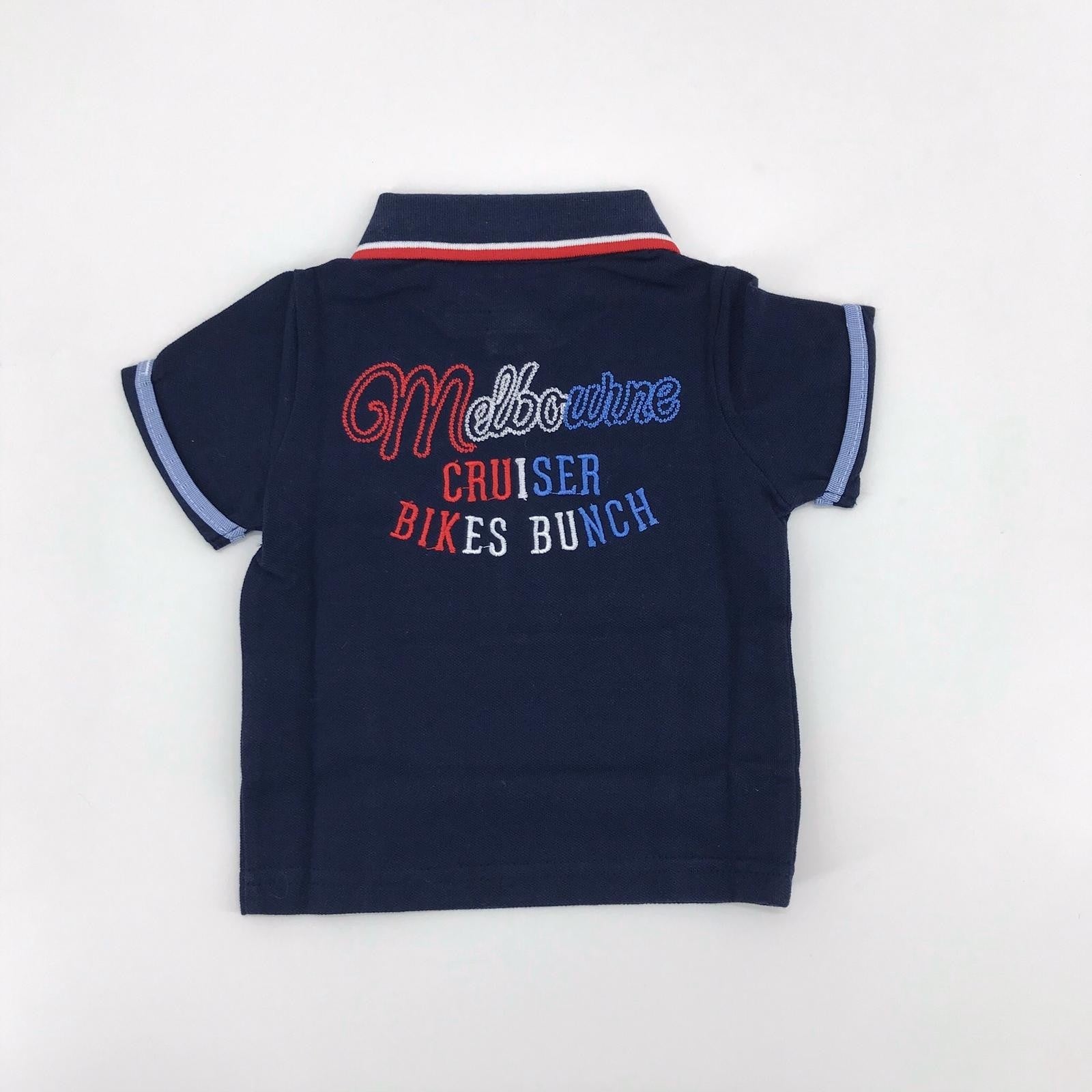 Poloa blu in tinta unita con ricamo sul petto e sul retro e chiusura con bottoni.
