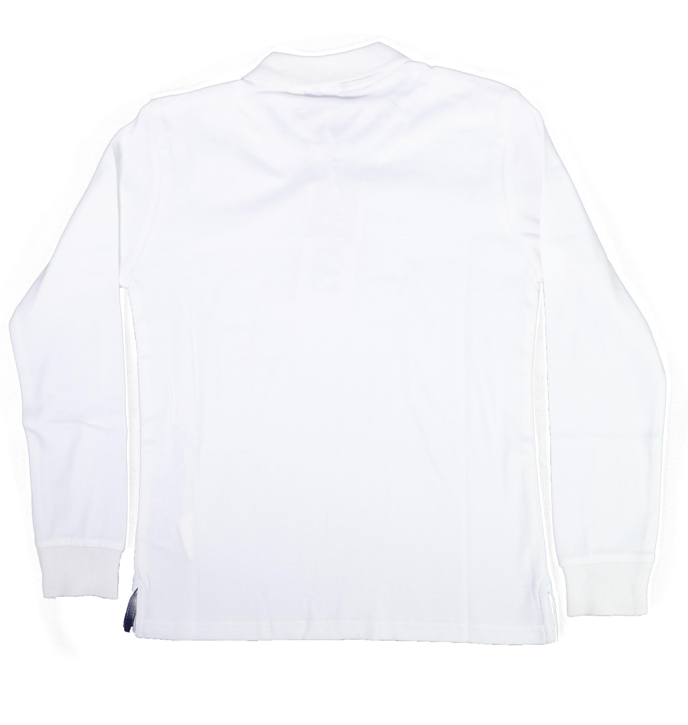 Polo in cotone manica lunga bianco in tinta unita con Ricamo Logo sul petto