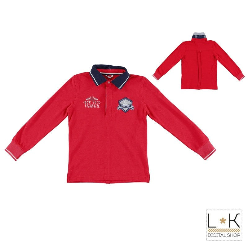 Polo in Cotone in tinta unita con stampe sul petto e chiusura a tre bottoni.