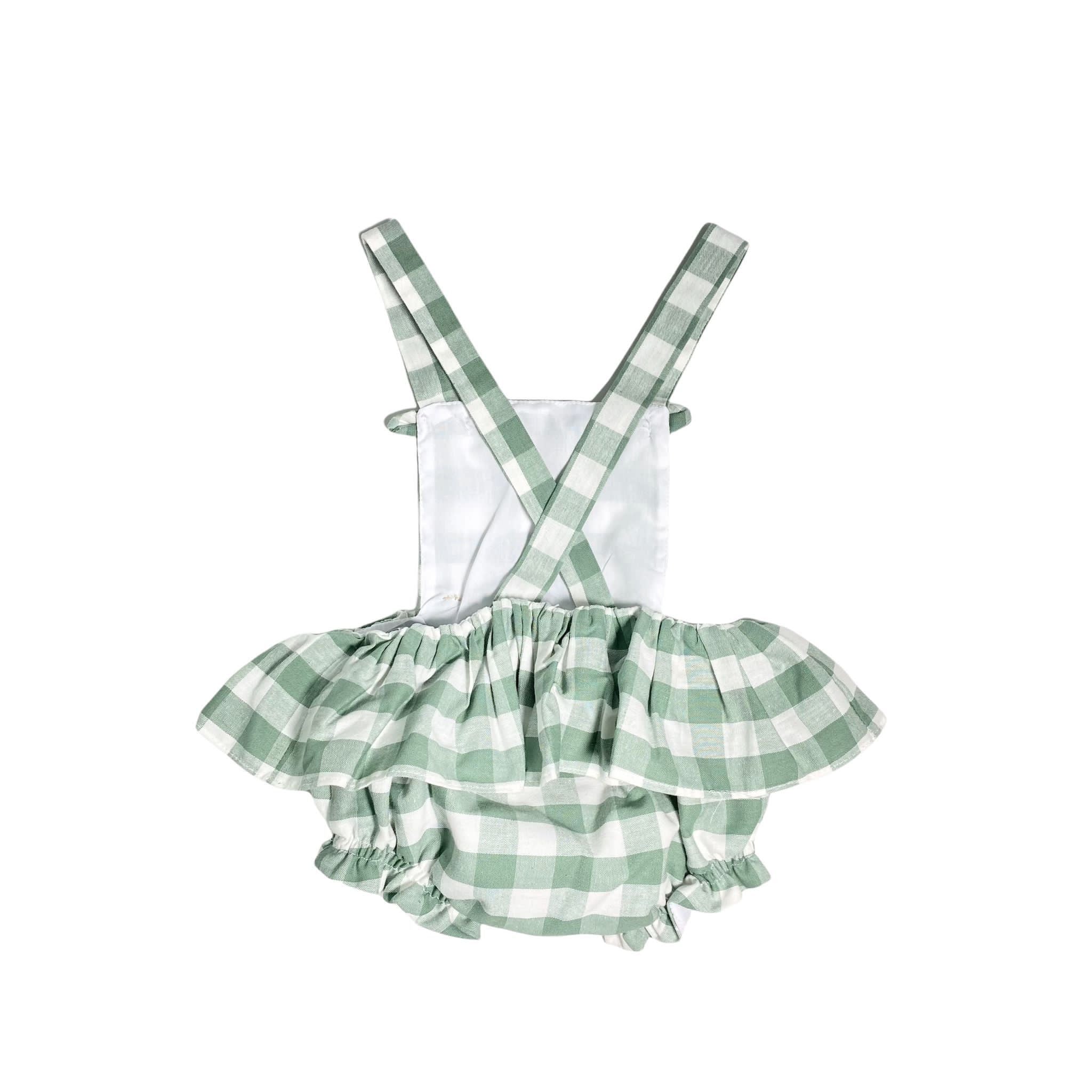 Salopette In Cotone A Quadri Verde Bianca Neonata YOEDU 3985