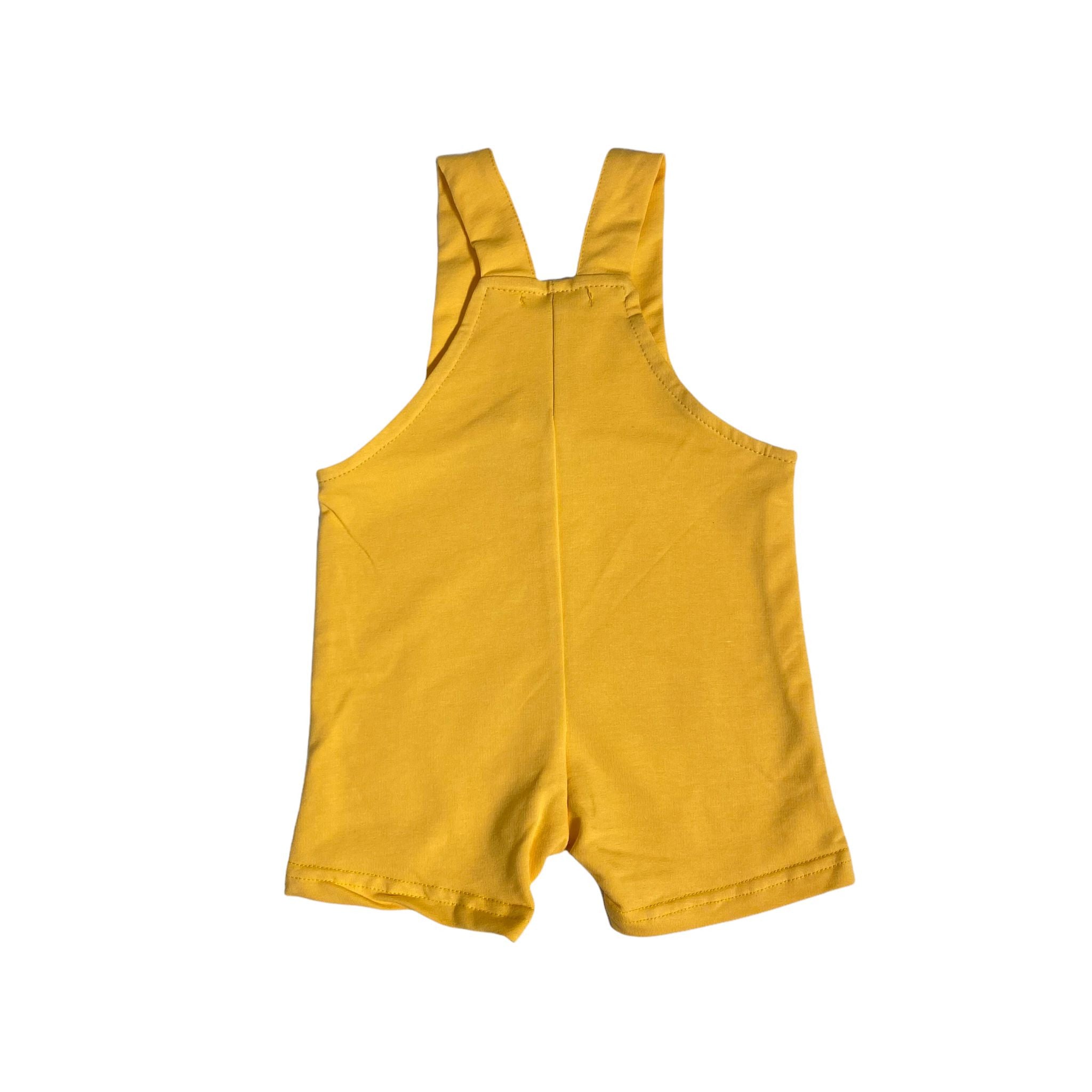 Salopette in cotone a gambe corte, in tinta unita, con chiusura con bottoncini.