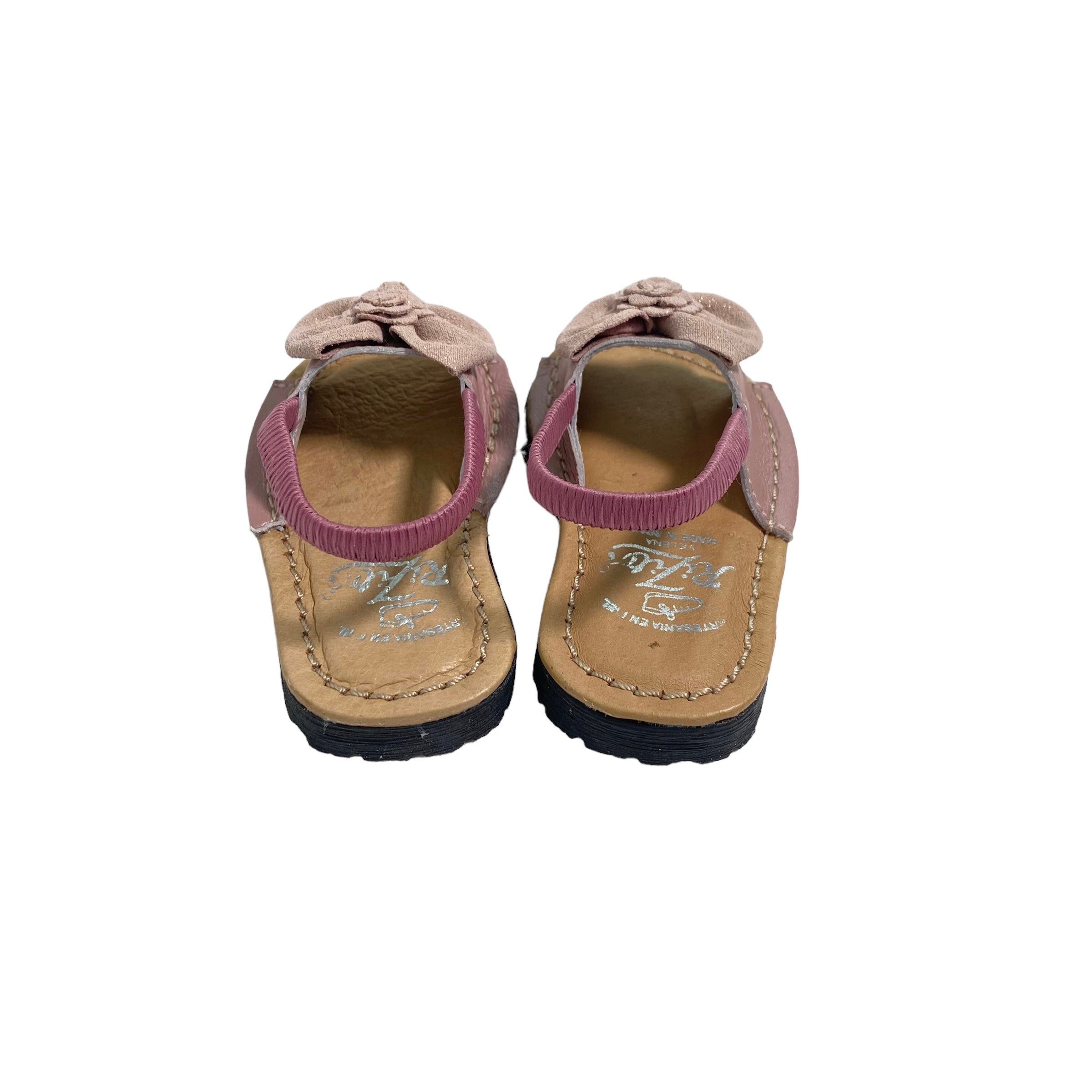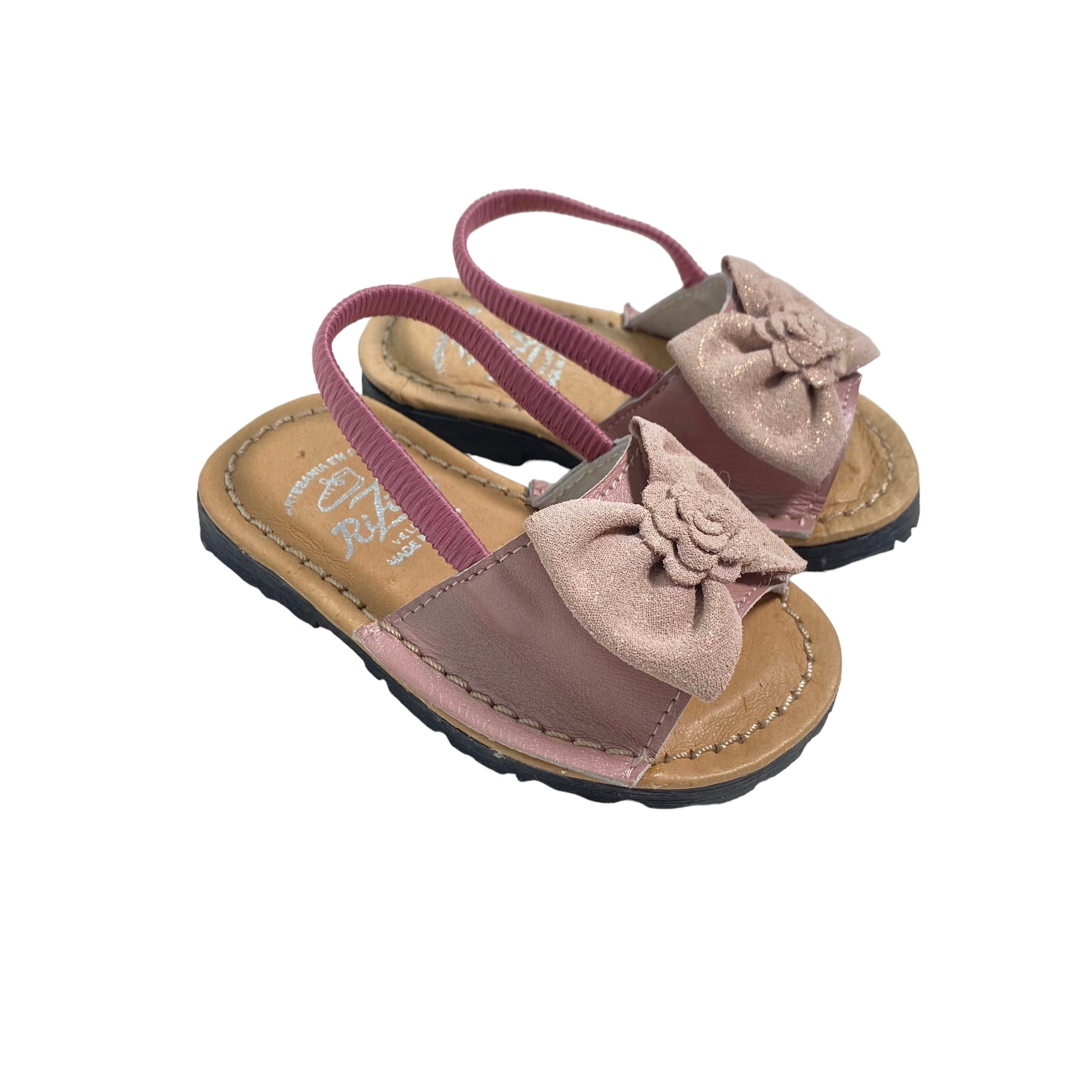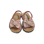 Sandali primi passi con fiocco in camoscio ed elastico sul retro.