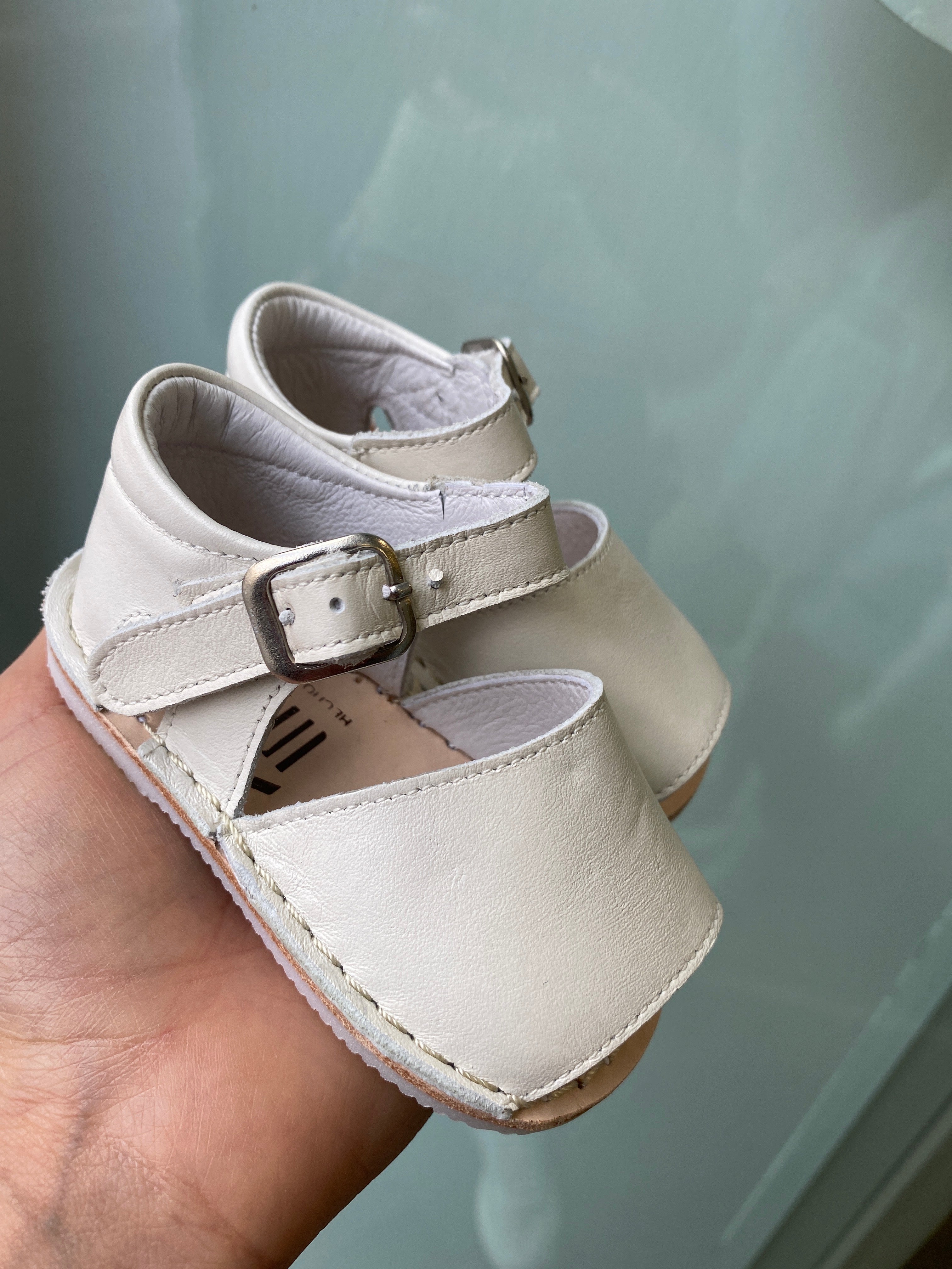 Sandaletti In Pelle Primi Passi Con Chiusura Laterale e Suoletta Antiscivolo