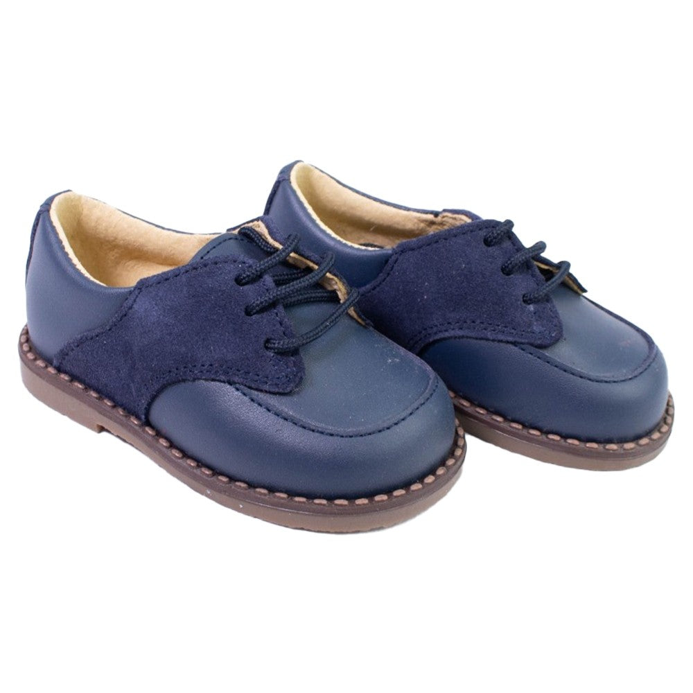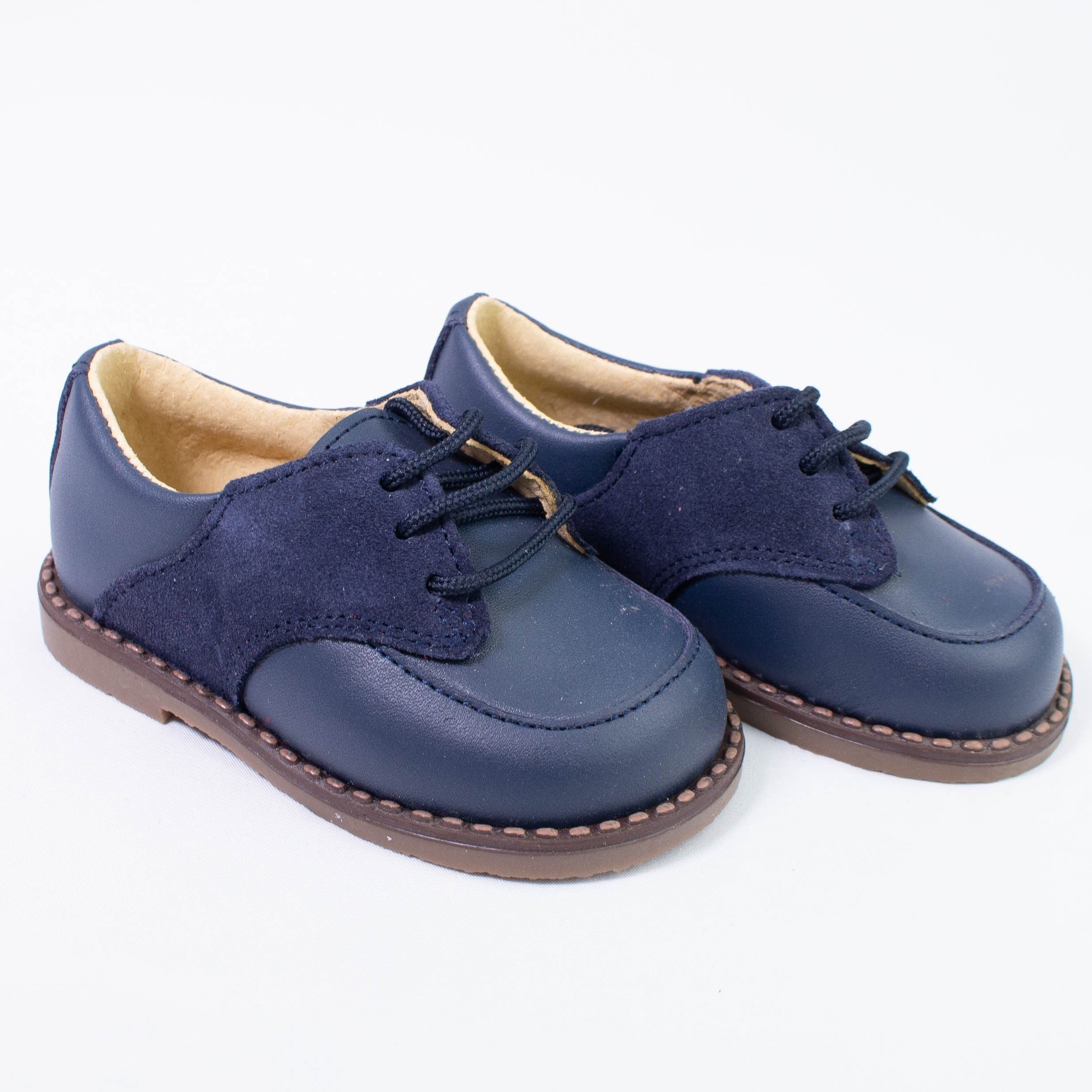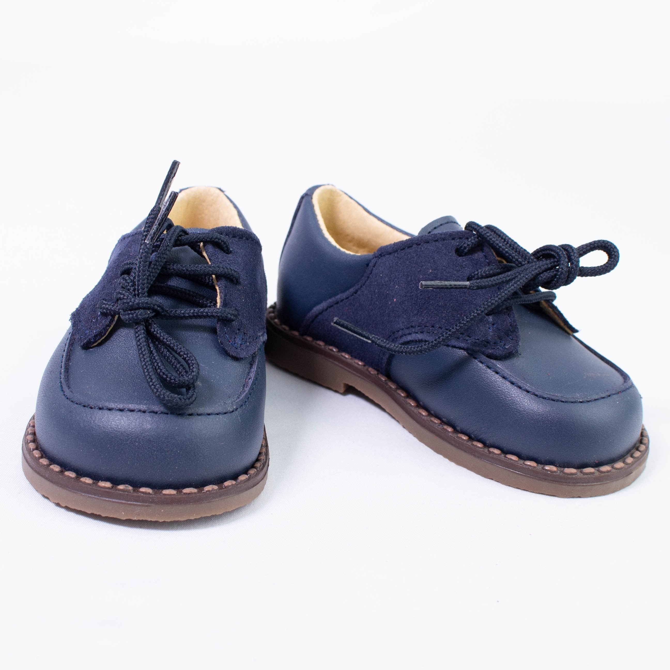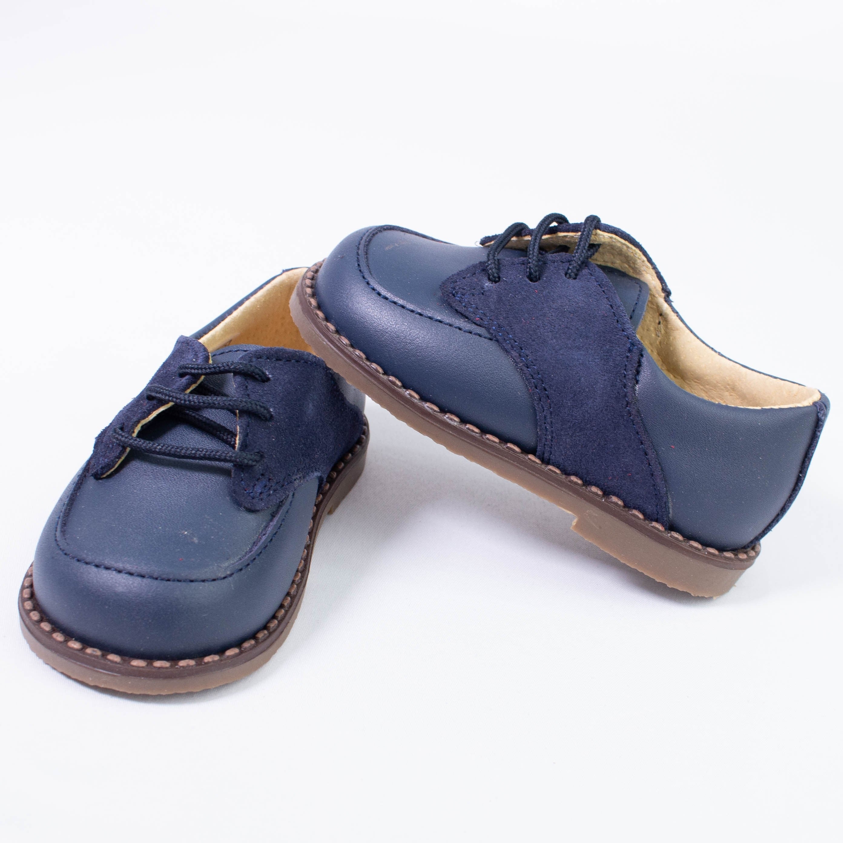Scarpa Modello Francesina in Pelle e camoscio con lacci. Plantare interno anatomico per i primi passi e suola in gomma.