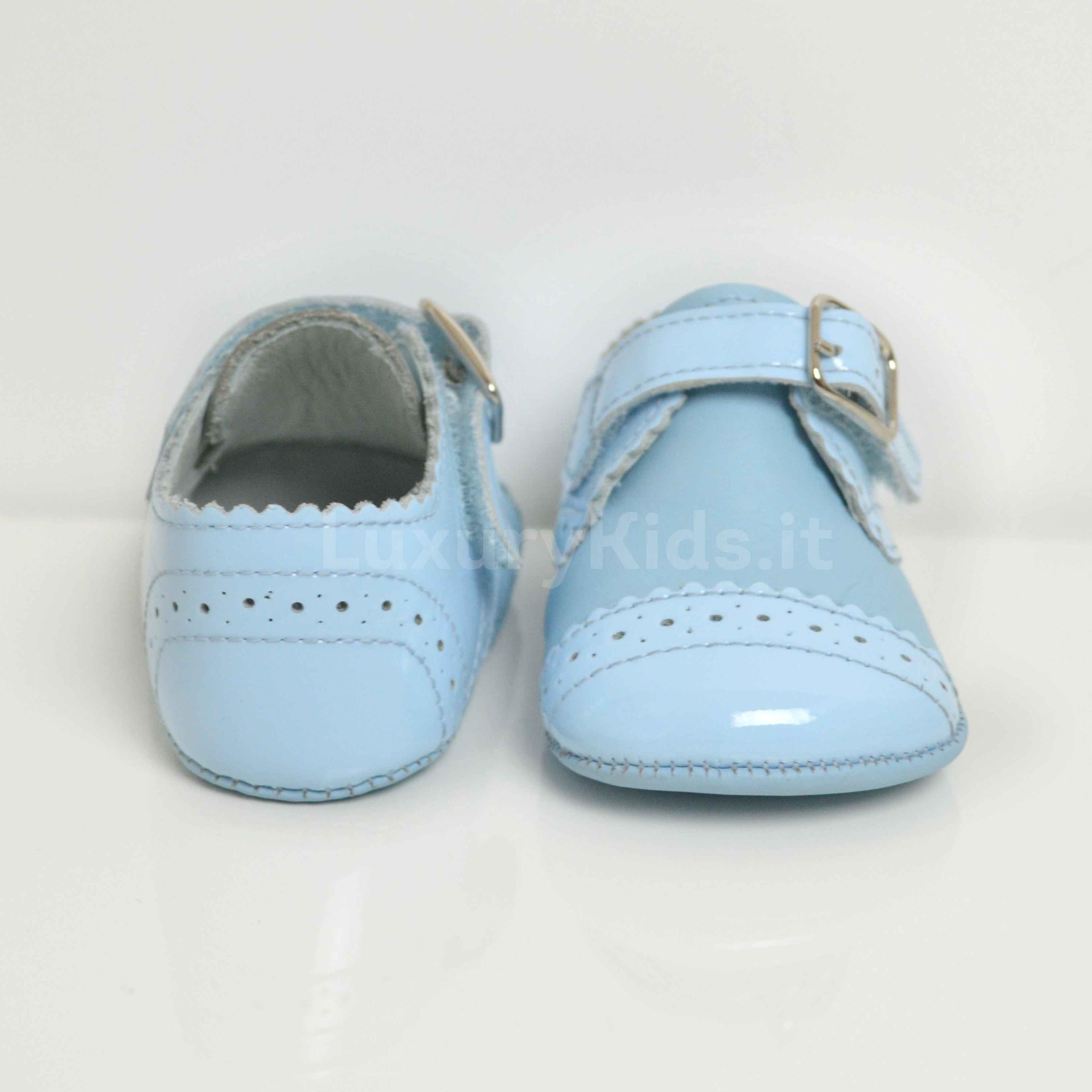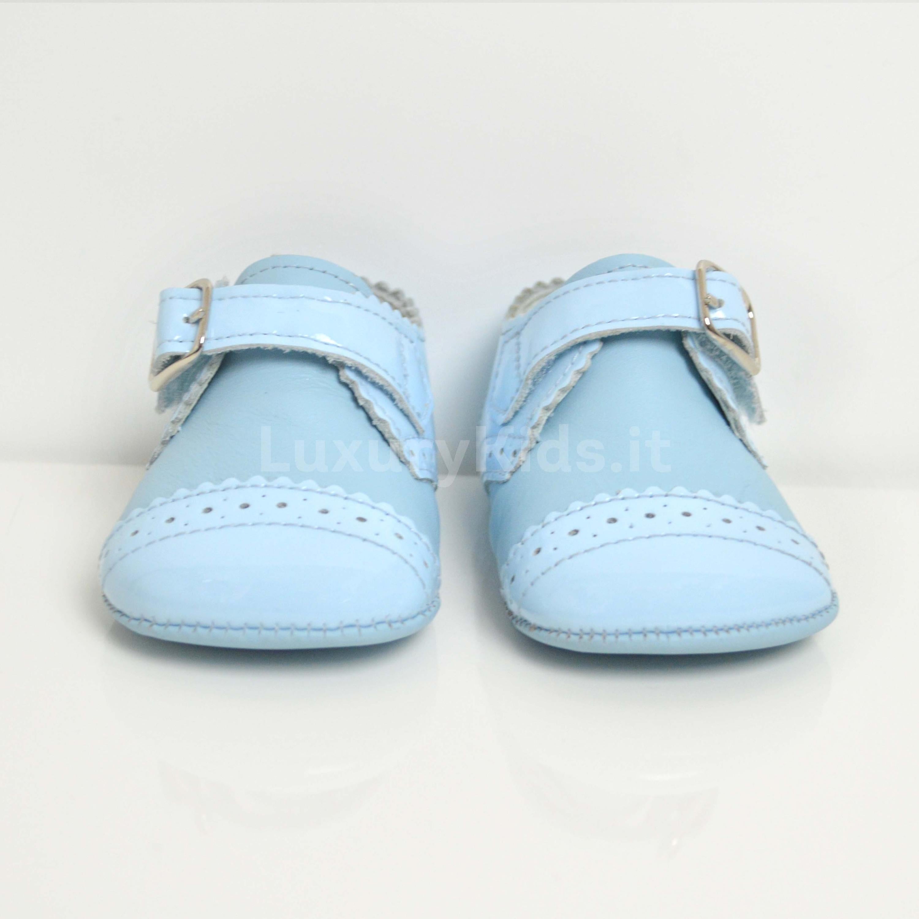 Scarpa da Culla Francesina in Pelle e Vernice Azzurra Neonato Panyno A2319 - PANYNO - LuxuryKids