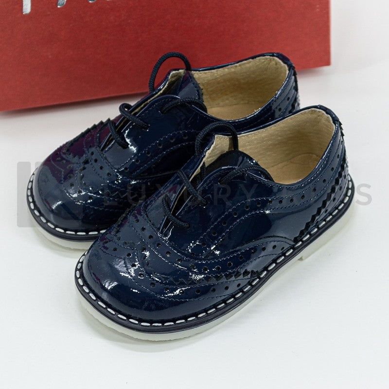 Scarpa Modello Francesina Primi Passi In Vernice Blu E Suola In Gomma Neonato Panyno B2628 - PANYNO - LuxuryKids