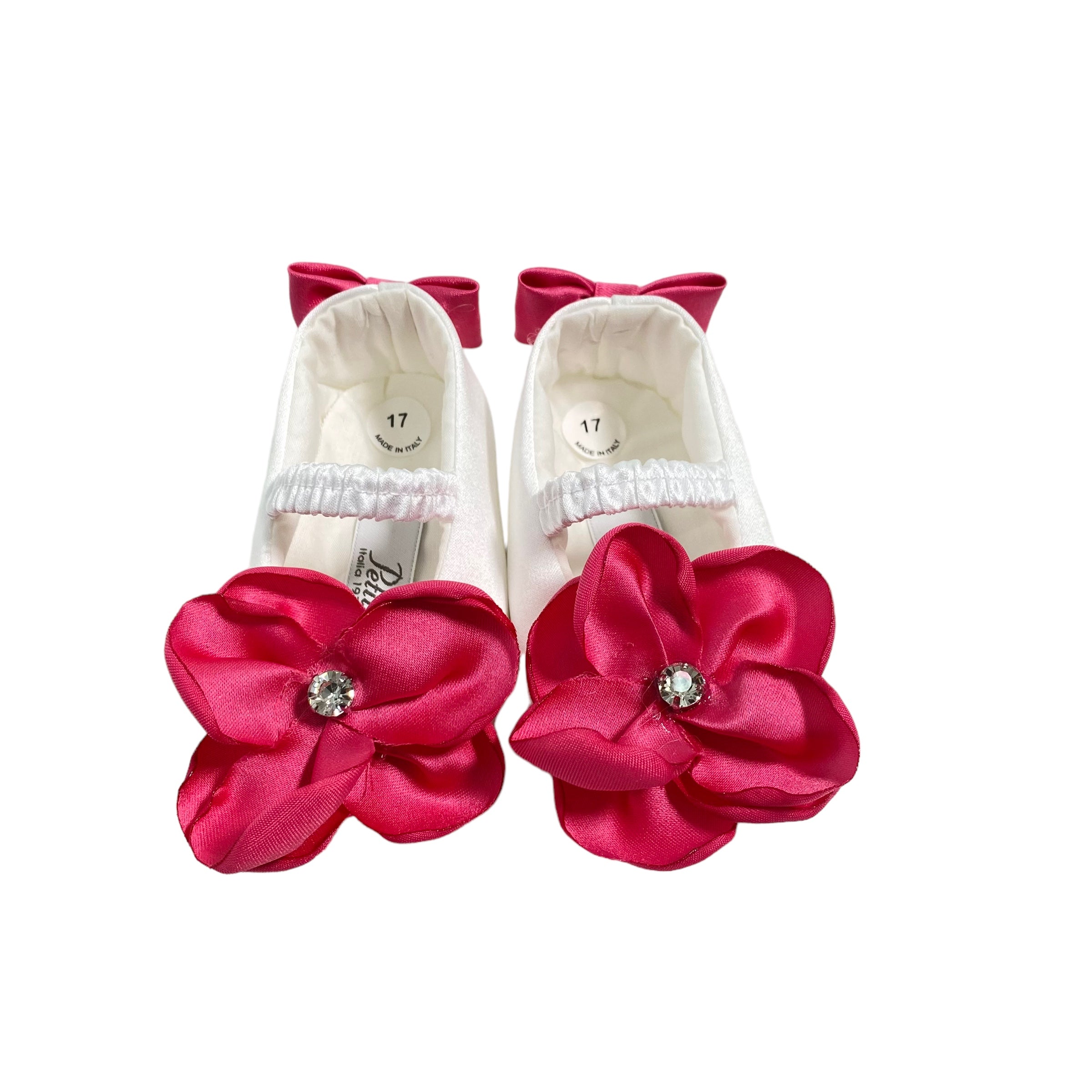 Scarpe Da Culla Modello Ballerina In Raso Con Fiore Neonata PETIT 0115659