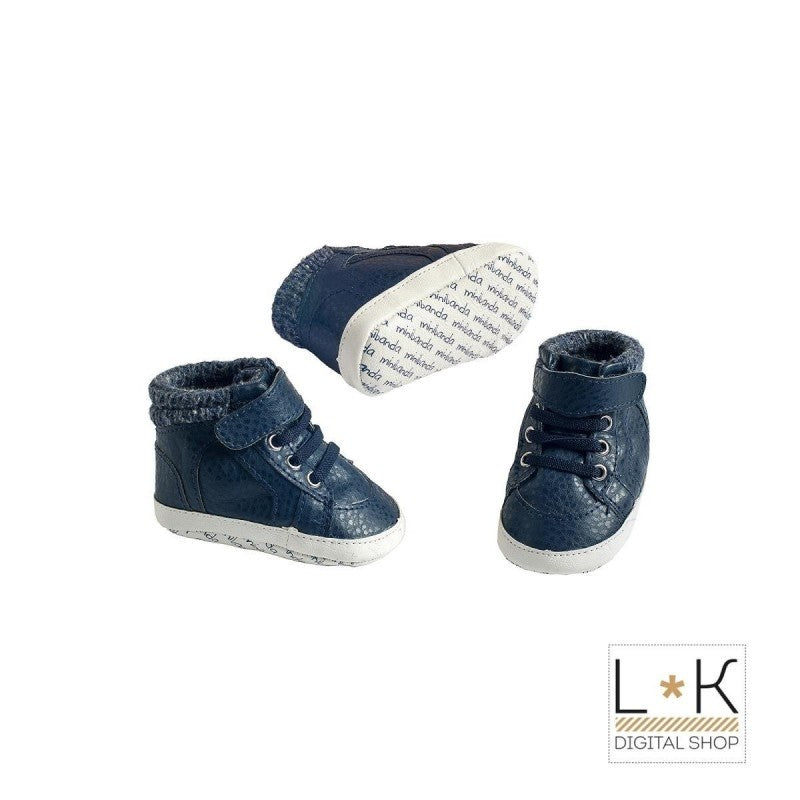Scarpine da culla sportive in ecopelle con lacci e strappo.