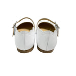 Scarpe primi passi modello ballerina, con chiusura con cinturino, con particolare smerlo sul retro.