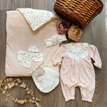 Set corredino nascita in ciniglia,100% made in italy,composto da 4 pezzi