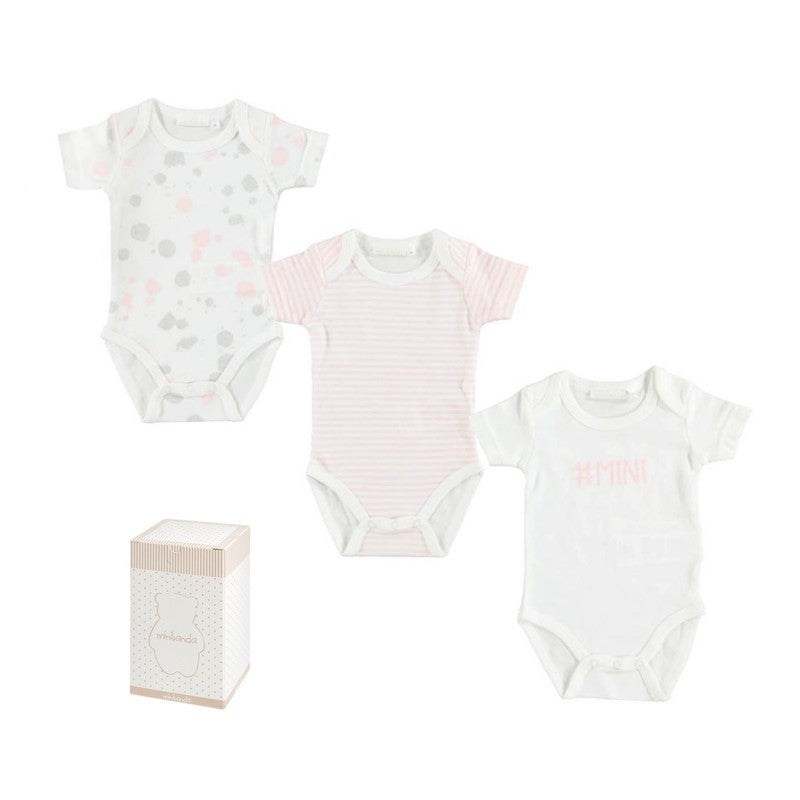 Set Tre Body In Cotone Manica Corta Rosa Neonata Minibanda V312 - MINIBANDA - LuxuryKids