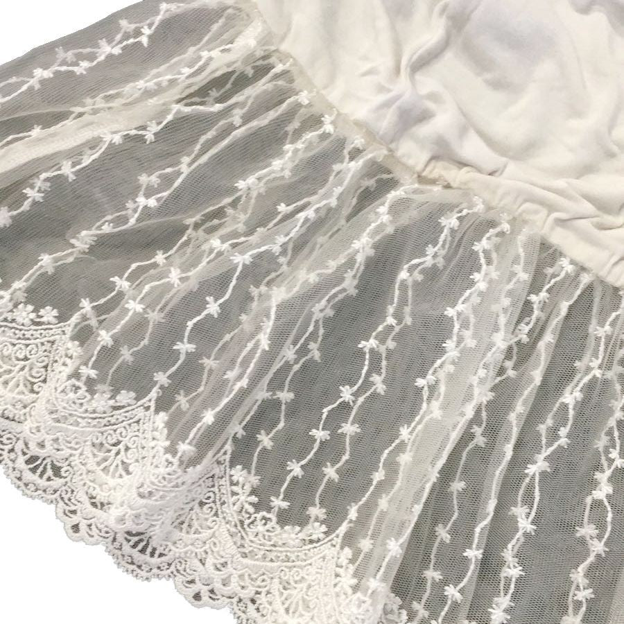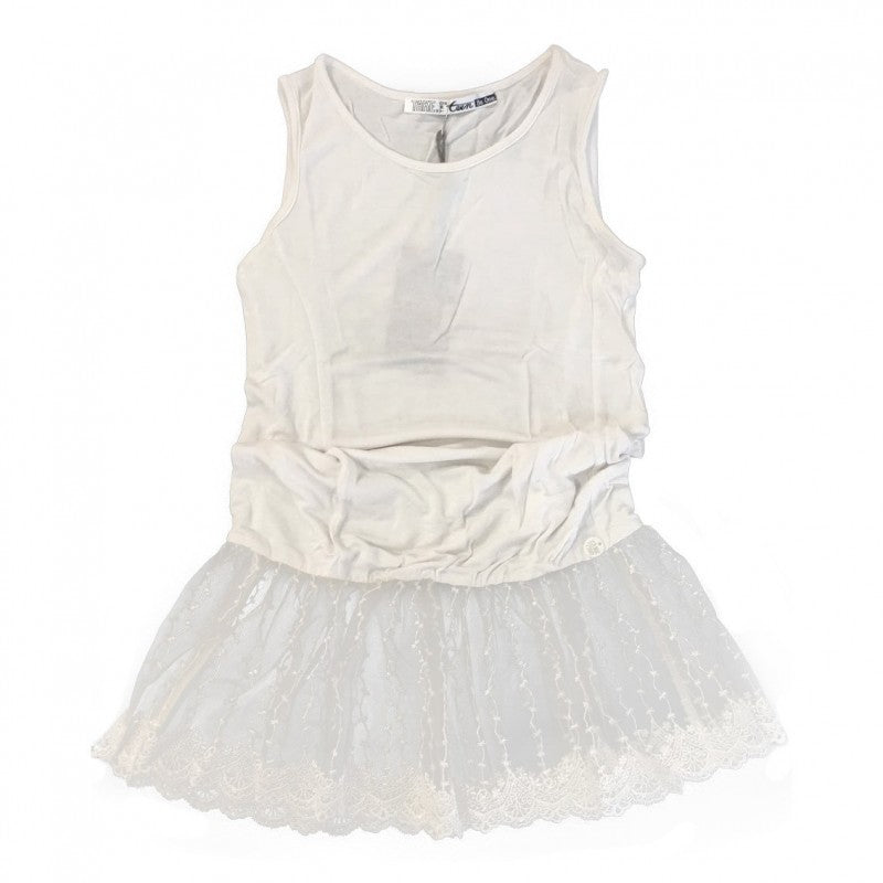 Sottoveste bianca in tinta unita smanicato con bordo finale in tulle ricamato