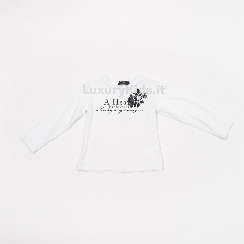 -T-Shirt in caldo cotone bianco a maniche lunghe con stampa sul petto
