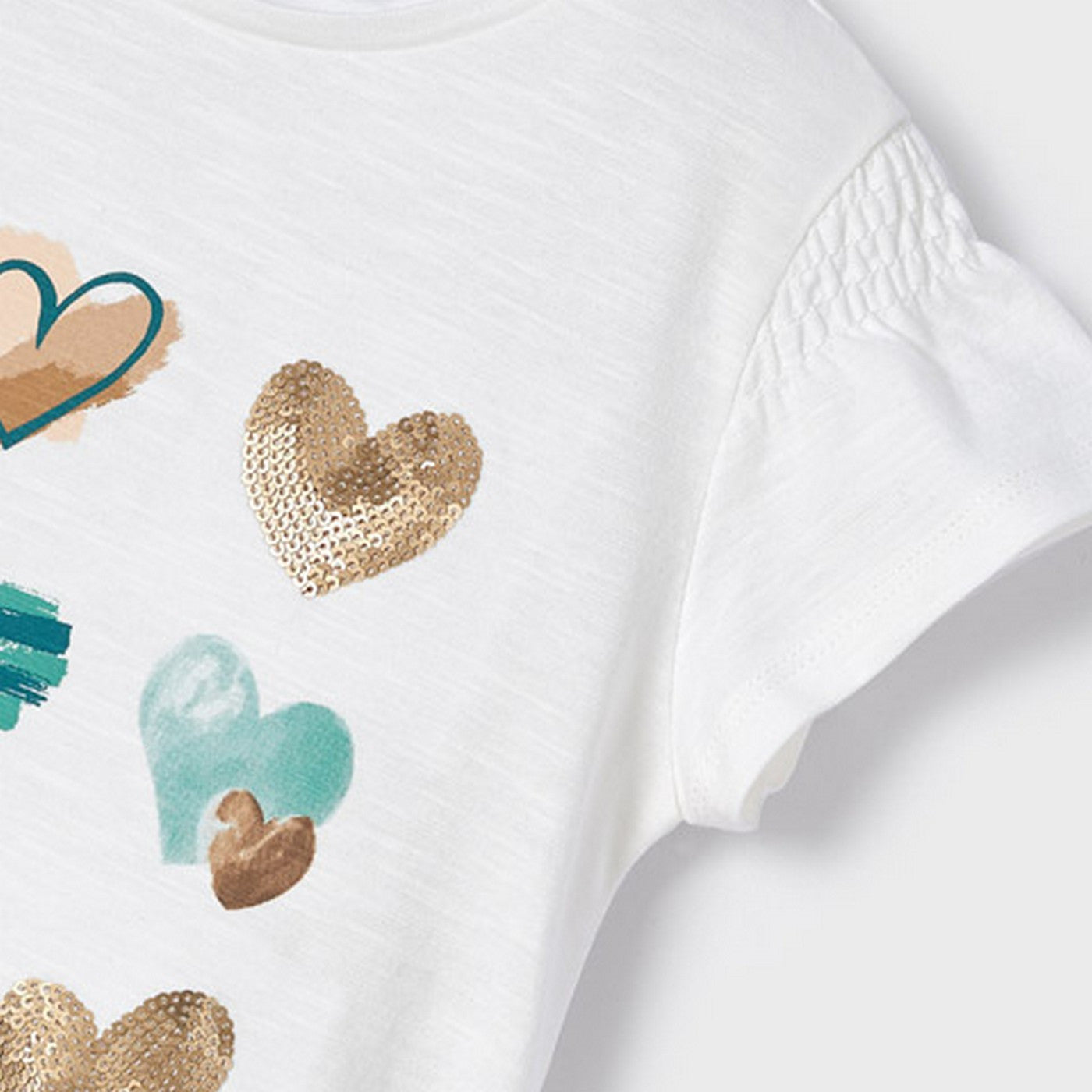 T-Shirt Bianca Stampata In Cotone Bambina MAYORAL 3031 - MAYORAL - LuxuryKids