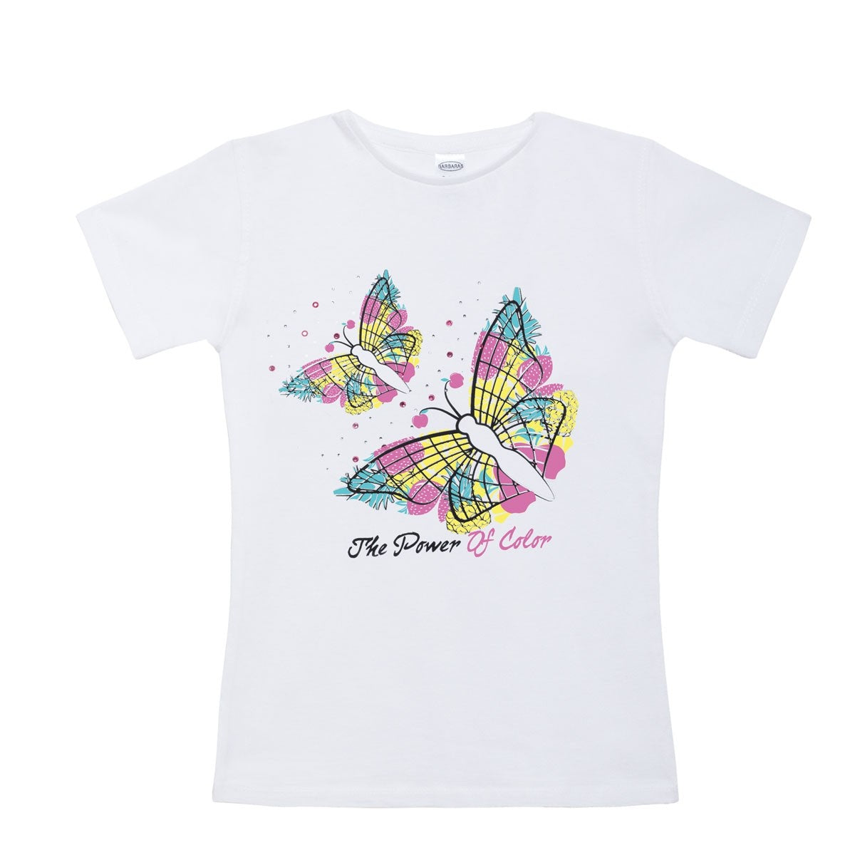 T-shirt mezza manica in cotone bianca con stampa camaleontica che cambia colore al sole.