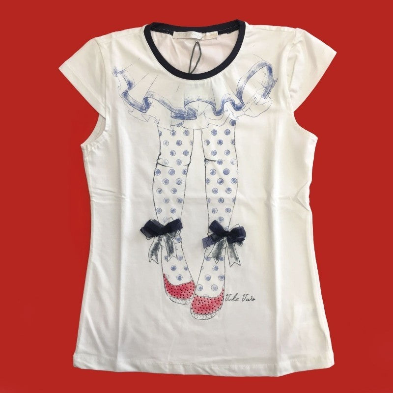 T-Shirt in Cotone Bianco con Stampa Bambina Take Two M03143 - TAKE TWO - LuxuryKids